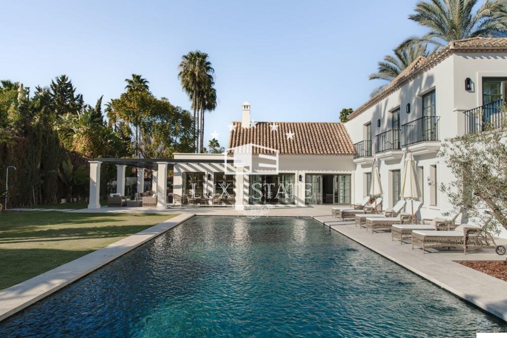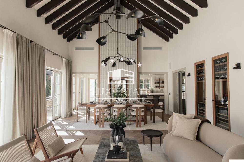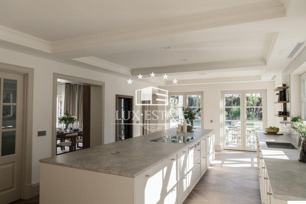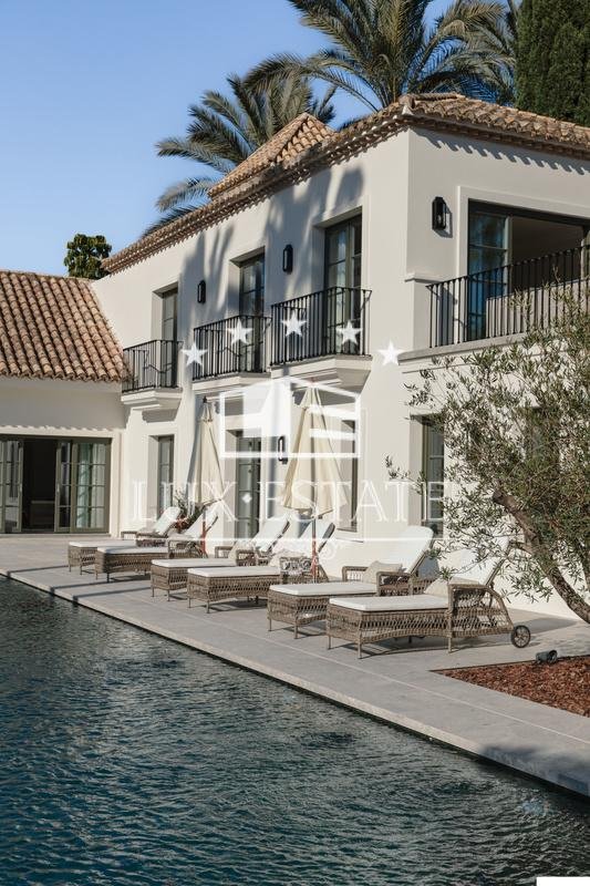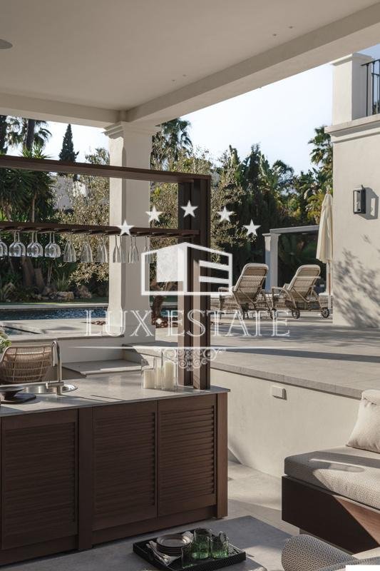 This newly constructed masterpiece showcases unparalleled quality with its French provincial flair and timeless architectural design. Covered porches provide shaded retreats to bask in the Mediterranean ambiance, while expansive terraces beckon for alfresco dining and leisurely lounging. A sunken chill-out area with a bespoke bar adjacent to the private pool sets the stage for memorable summer gatherings.