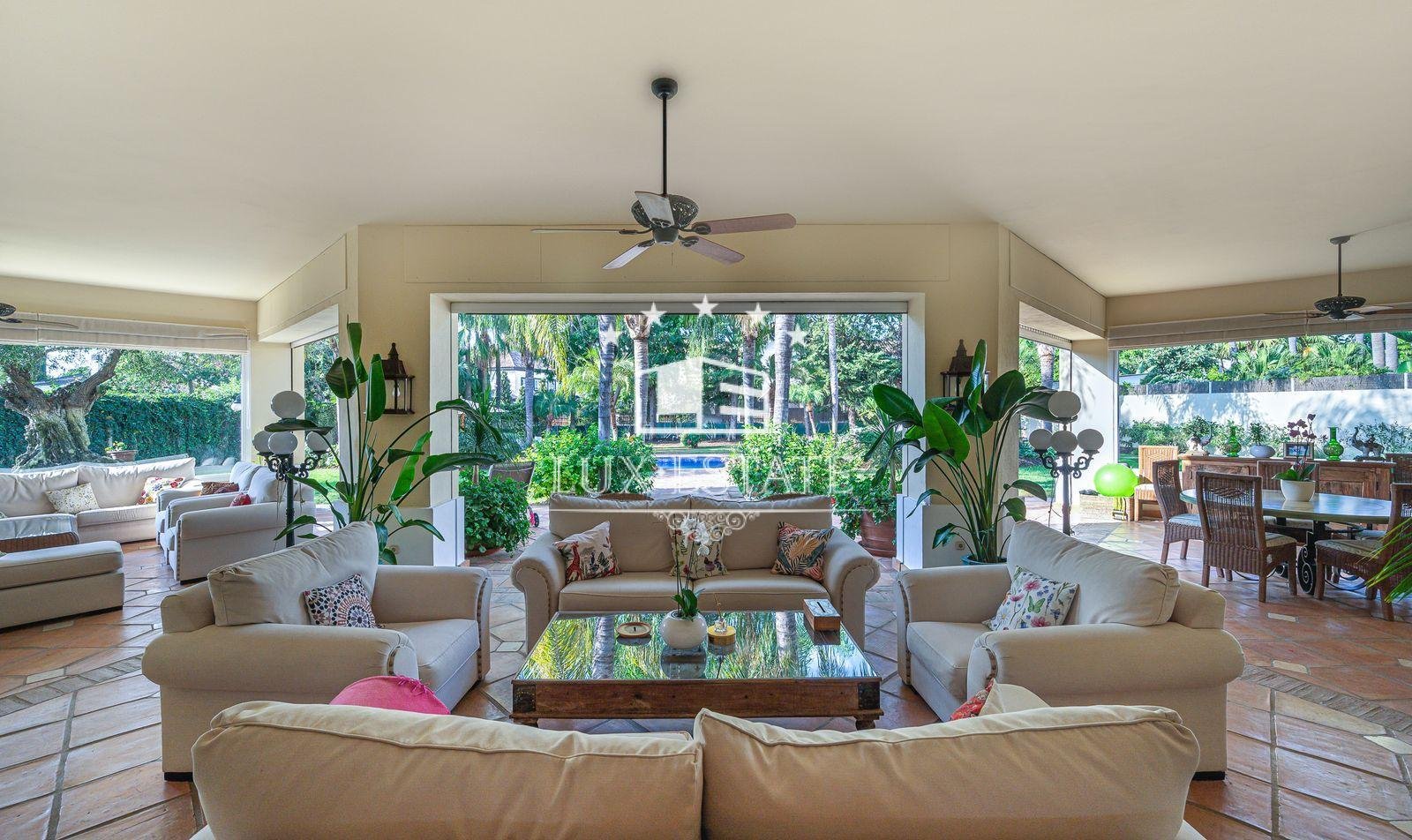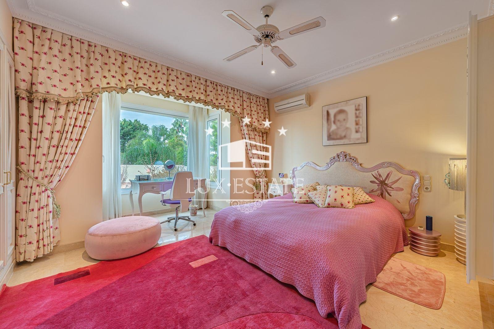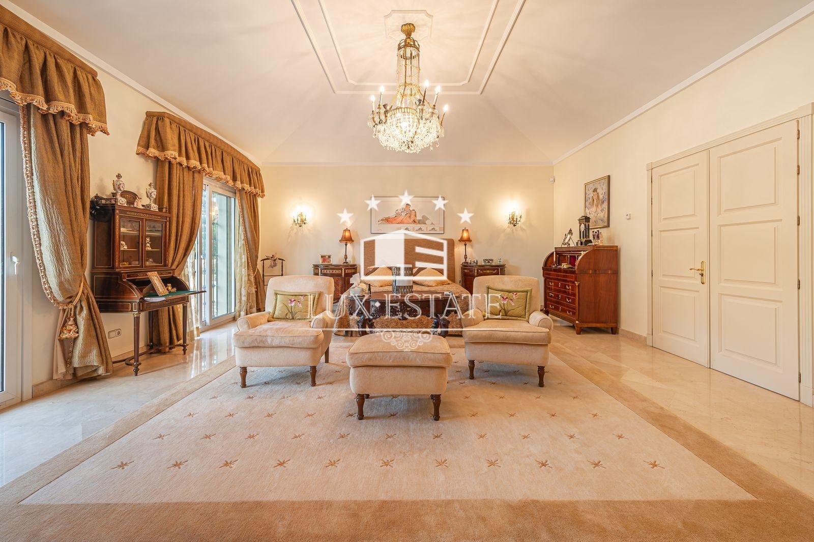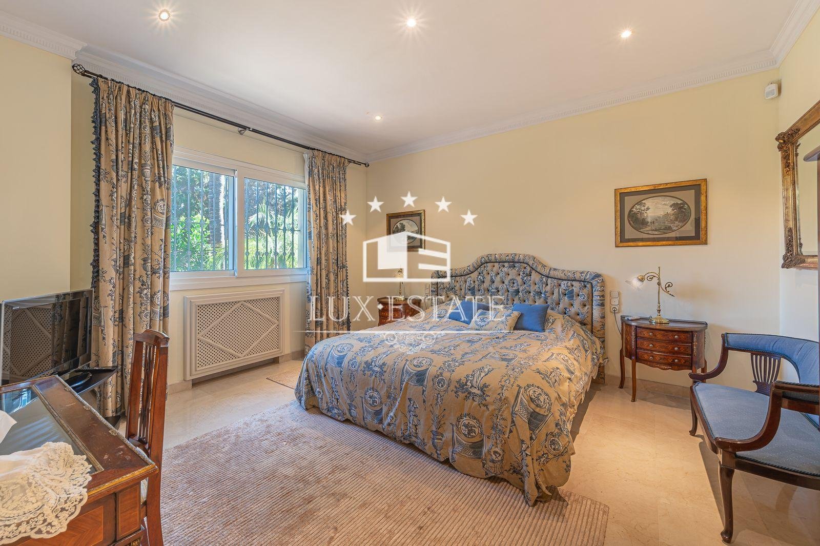 Stunning villa boasting a distinctive classic design in Guadalmina Baja, situated in close proximity to the San Pedro de Alcantara beach. The property comprises 1457m2 spread across three floors on a generous plot measuring 2.047m2.