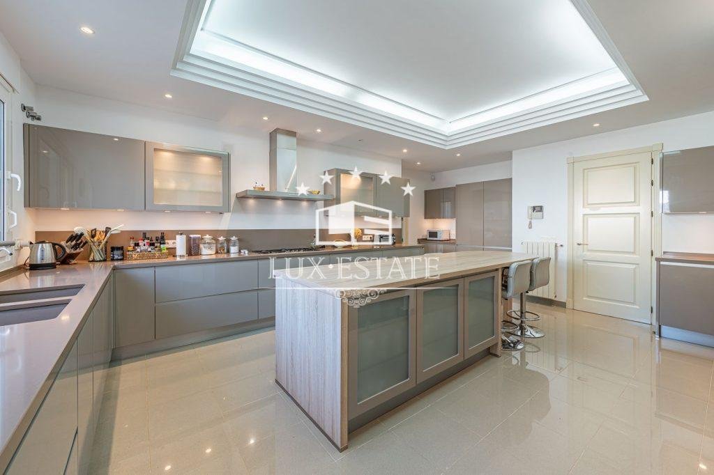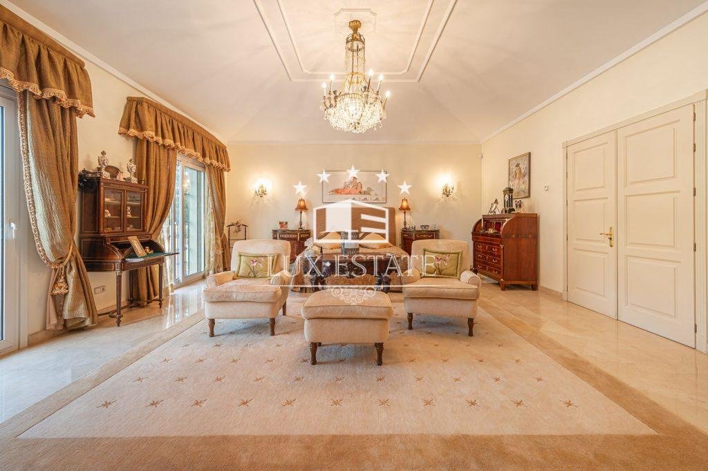 The ground floor comprises of a reception hall, a living area providing access to a library and dining space, one of which features a fireplace, a guest bathroom, 2 bedrooms with en suite facilities, a fully-equipped kitchen complete with upscale appliances, pantry, and a laundry area. The property benefits from a lift capable of carrying up to 4 people for easy access to all 3 floors, as well as a splendid and spacious staircase.