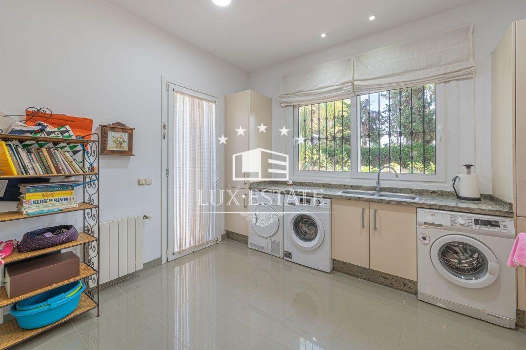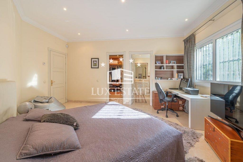 The plot is generously spacious and boasts exquisite, well-maintained gardens, a barbecue area, and a vast swimming pool that can be relished virtually all year round, owing to Marbella’s climate.
