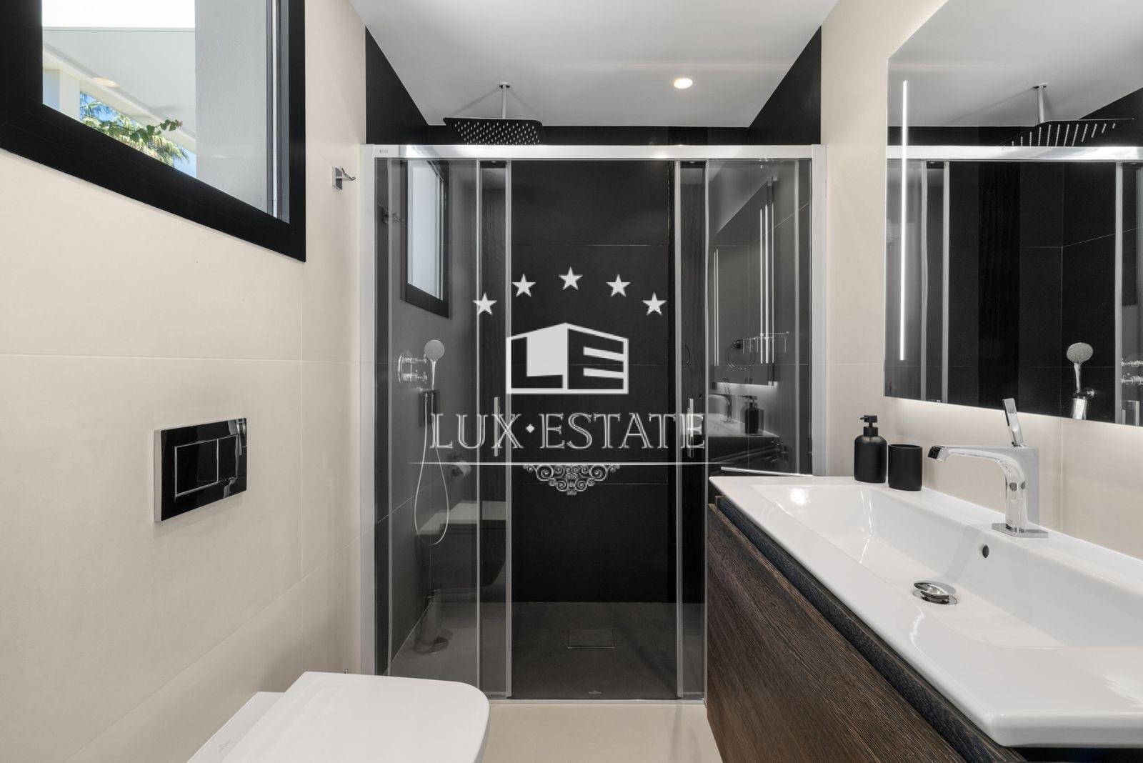 The indoor area is magnificent, and the outdoor space is equally impressive. The outdoor kitchen and barbecue area, created by the exclusive Swedish brand ‘Hälsing’, is perfect for cooking the ideal Al-Fresco meal. Before your perfect al-fresco meal under the warm Marbella sun, take a moment to relax in the Jacuzzi made by the reputable Jacuzzi brand, with up to 8 family members and friends. Afterwards, cool off under one of the heated showers by the pool or outside the master suite. End your day with a movie under the stars in the outdoor lounge area, complete with a 65-inch TV for the ultimate outdoor cinema experience. The rooftop solarium provides an ideal location to enjoy the sunset with a glass of wine.
