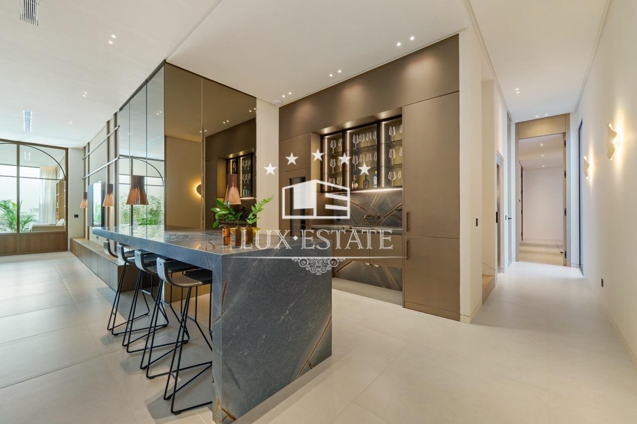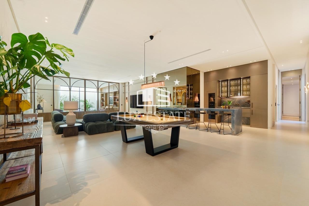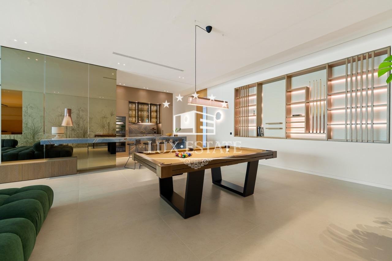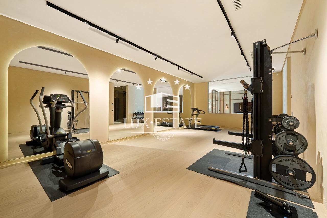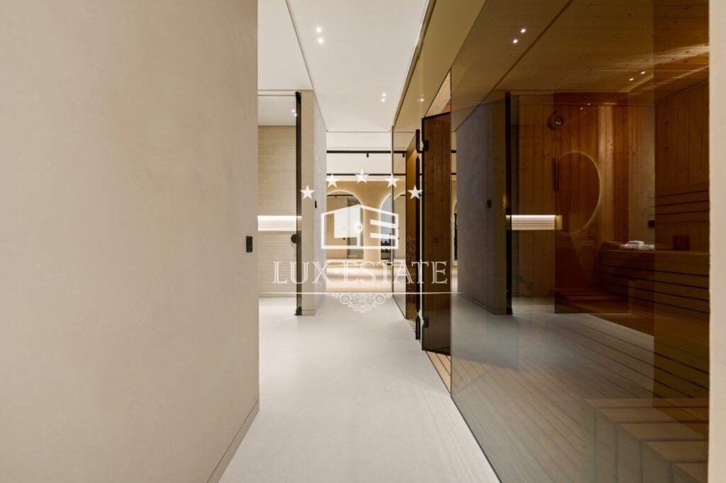 The lower level is dedicated to leisure and lifestyle. It offers a fully equipped gym, sauna, bar, TV lounge, and playroom, alongside two additional en-suite bedrooms and a quiet home office.