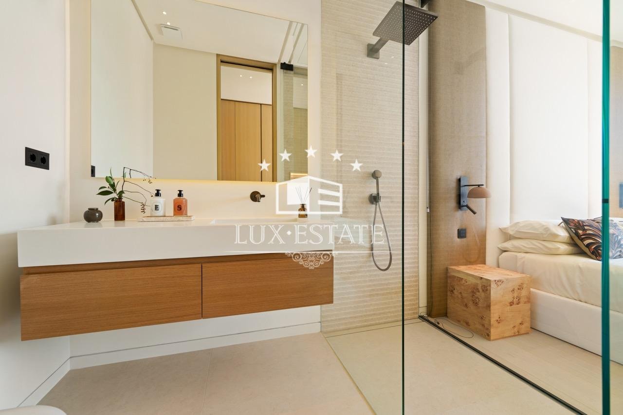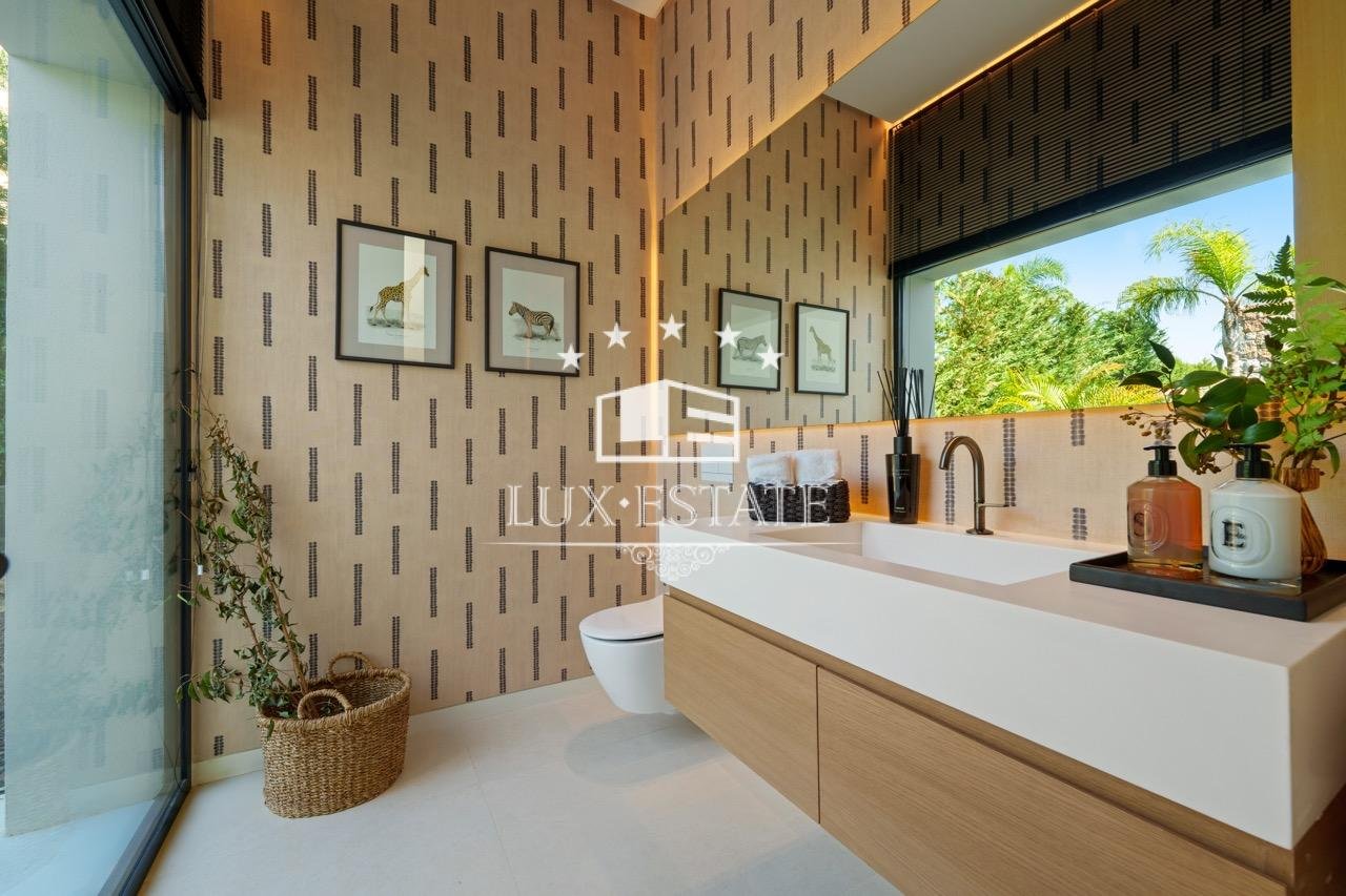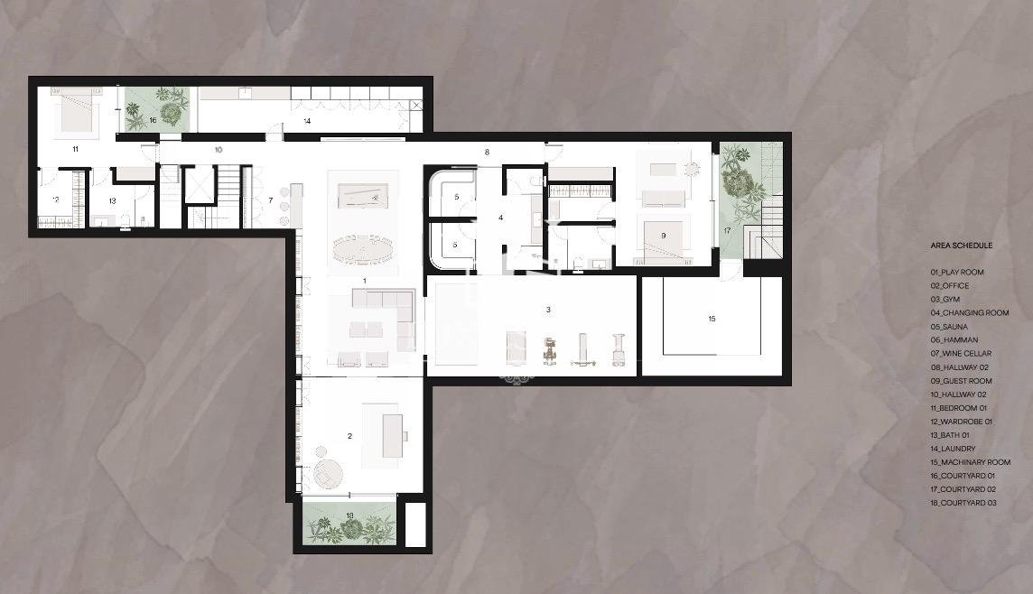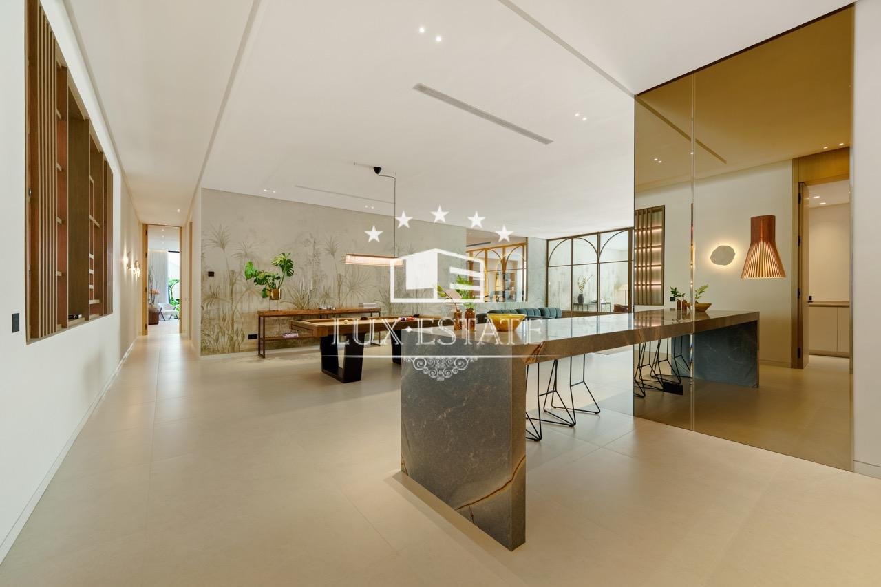 The lower level is dedicated to leisure and lifestyle. It offers a fully equipped gym, sauna, bar, TV lounge, and playroom, alongside two additional en-suite bedrooms and a quiet home office.