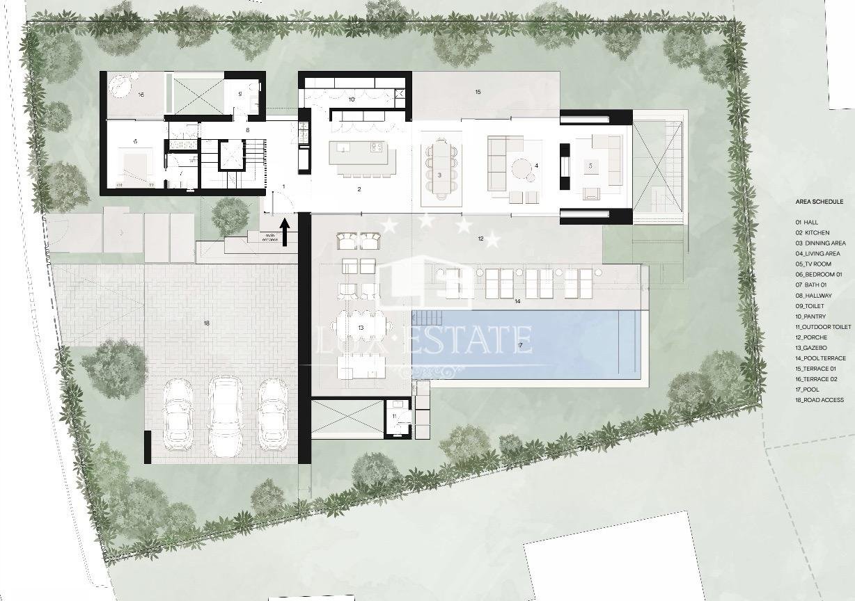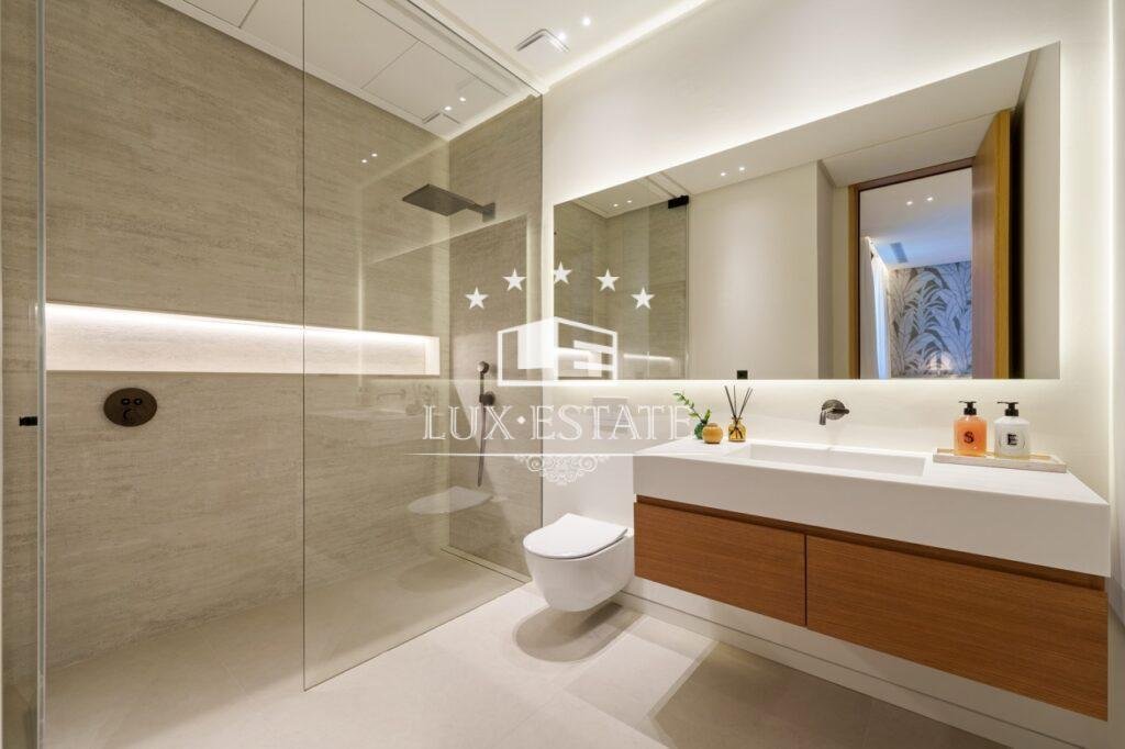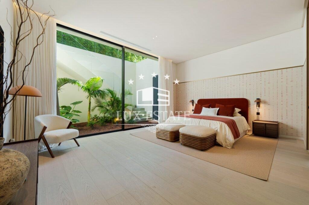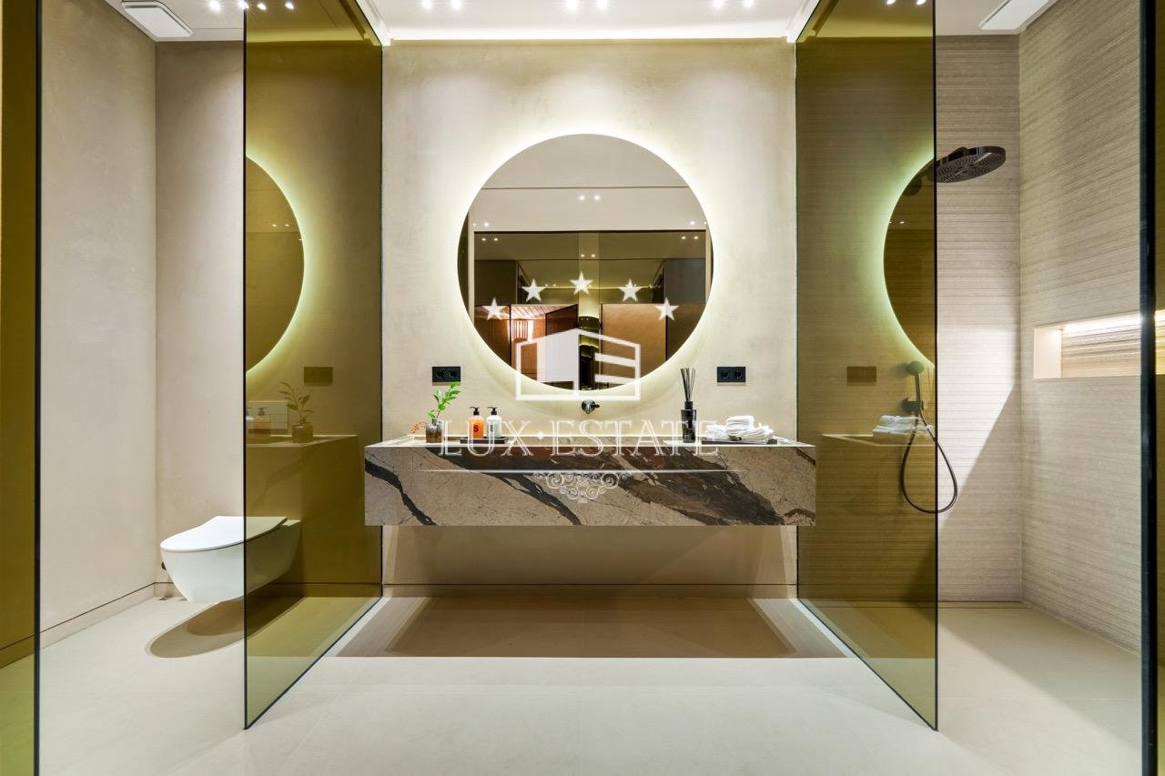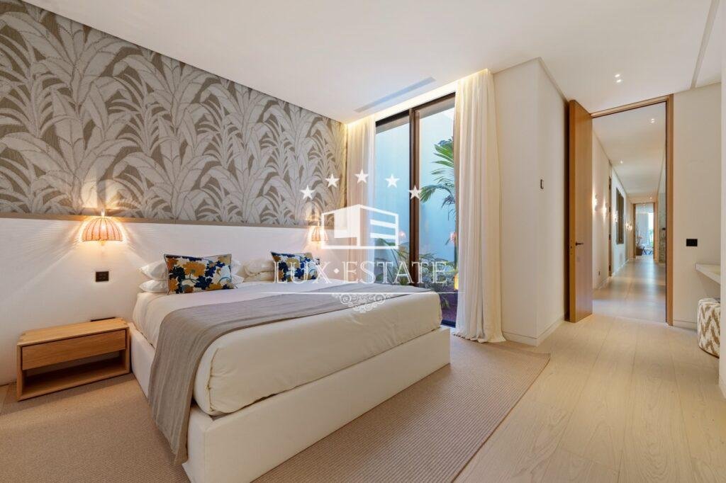 The upper floor hosts three elegant en-suite bedrooms, including a luxurious master suite—a private sanctuary complete with a walk-in wardrobe, spa-like bathroom, and a secluded terrace with its own jacuzzi.