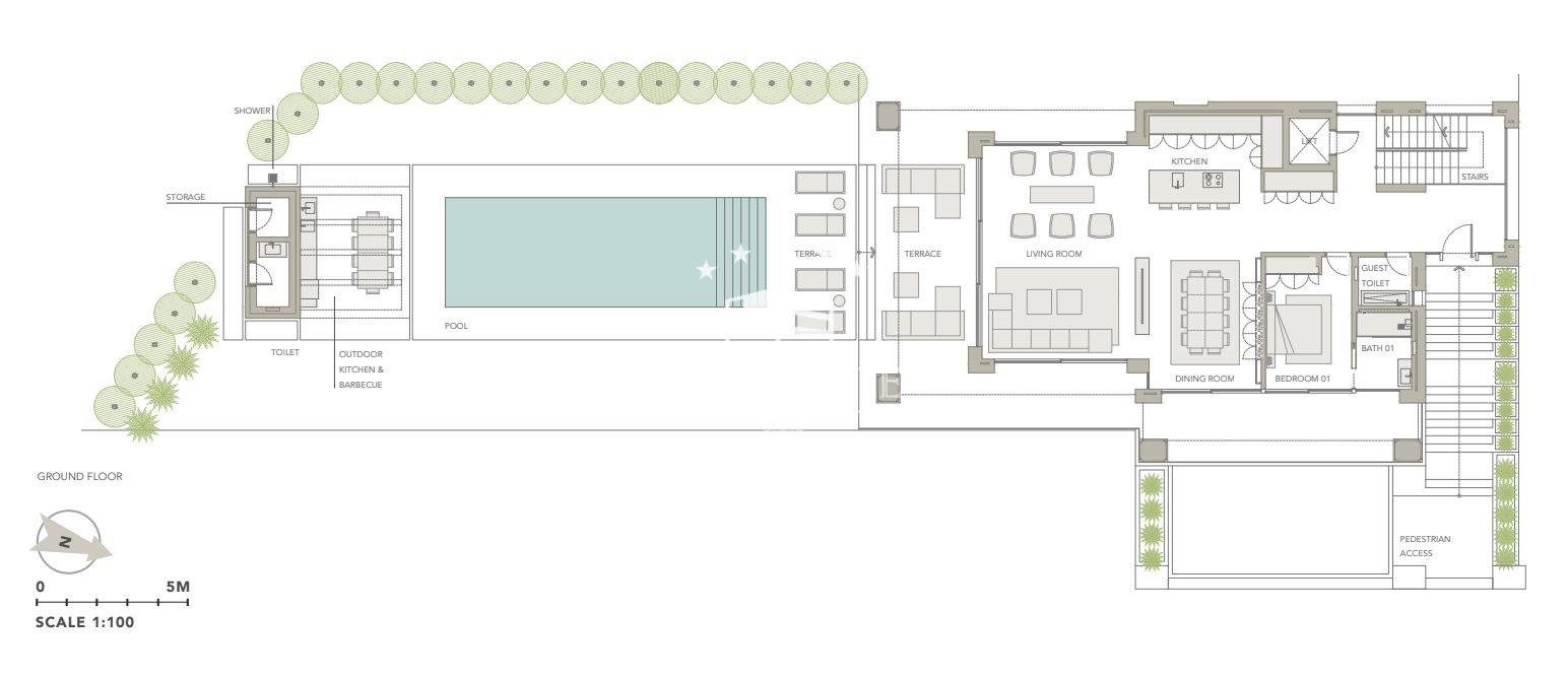 A perfect location for a gathering, you can serve guests at the poolside bar before taking a few steps and peering out at the Mediterranean Sea that stretches out across the horizon. Top quality landscaping vigilantly protects your privacy so you can truly put yourself at ease. Compromising of a total of 4 bedrooms, all completed with ensuite bathrooms.