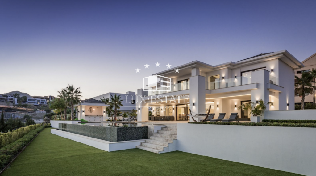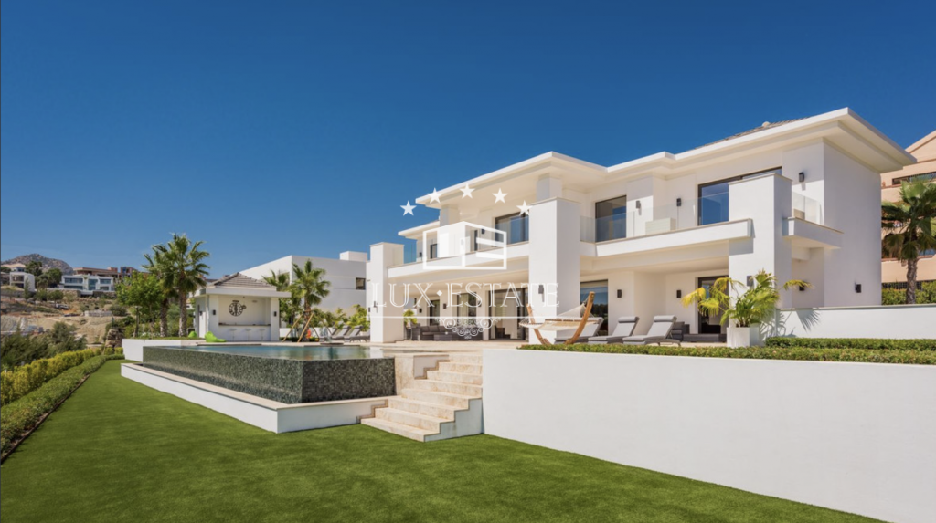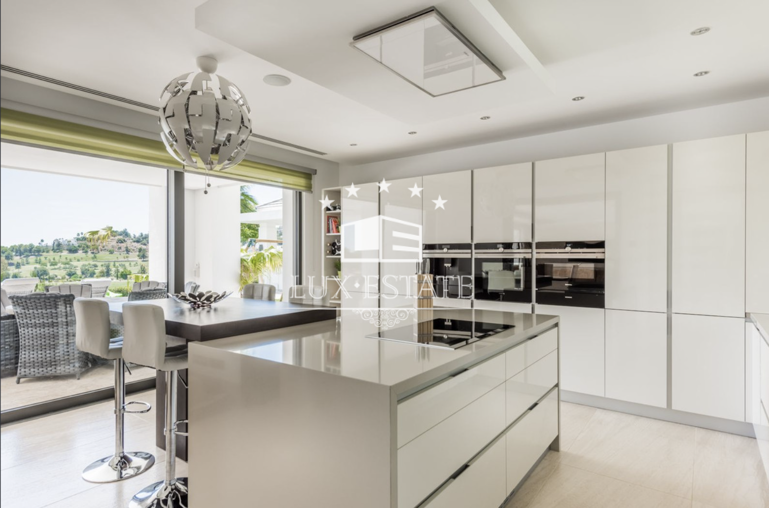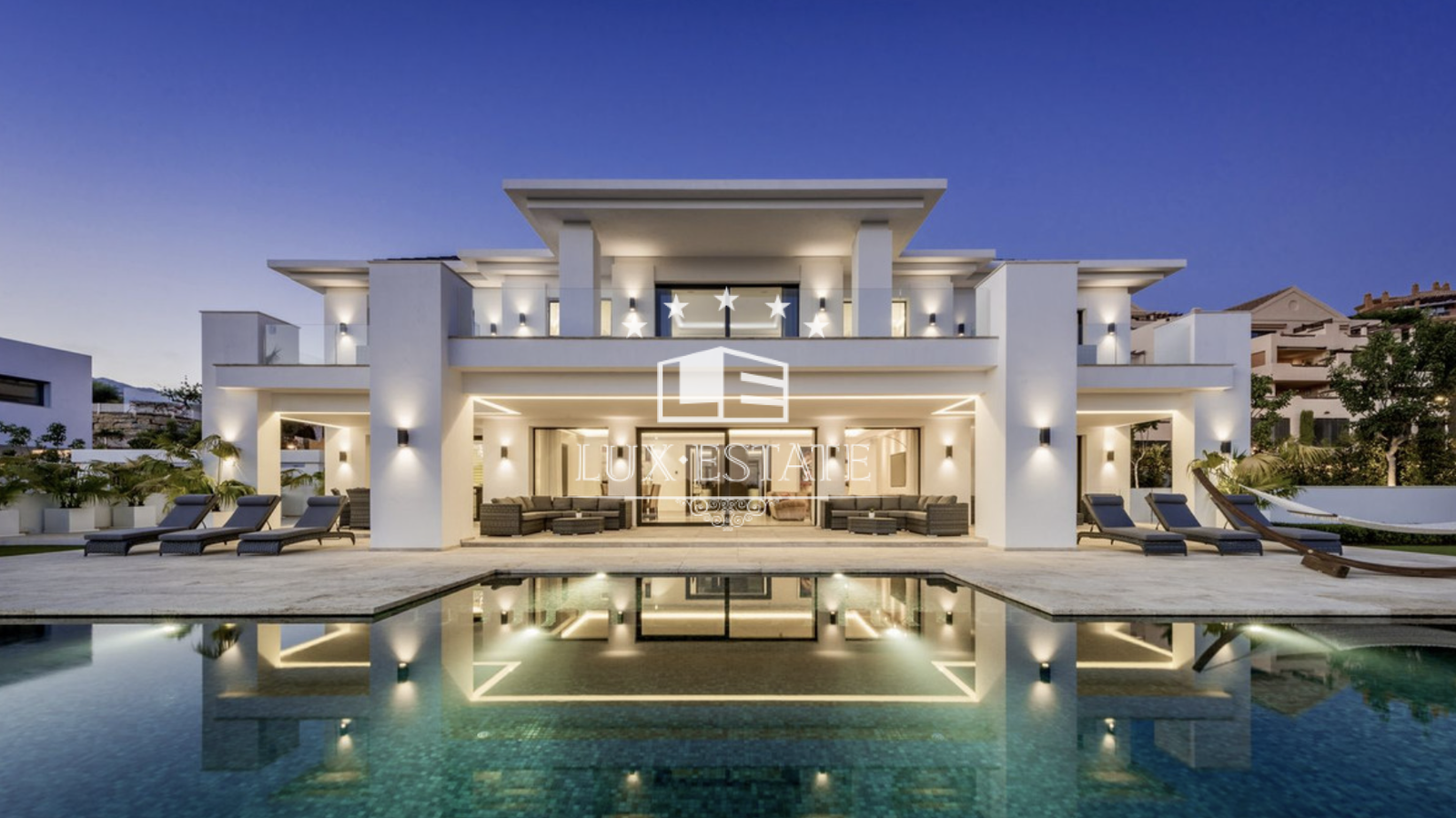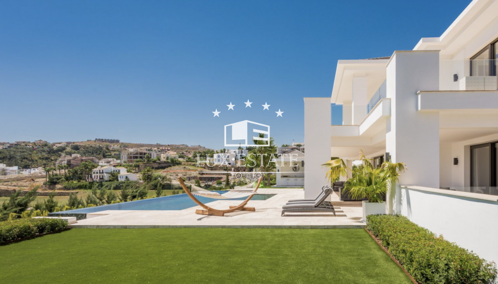 This exquisite home was recently finished by award-winning architects ARK and showcases the finest finishes and qualities available. The property enjoys a golf-view elevated position within the gated community of La Alqueria which conveniently provides 24 hour security for its residents. Entering the property by the front door gives access to a grand hallway with double heigh ceiling and a feature staircase made from natural wood and glass. Passing through the hallway you will enter a large living room with outstanding views across the infinity pool towards the golf course. To the right you will find a dinning room area and fully equipped designer kitchen. On this level there is also a guest suite with access to the garden. Moving up to the first level you will find three further bedroom suites including the grand master suite that boasts a luxurious bathroom and walk in dressing room. All bedrooms on this level enjoy access to a large terrace with views across the golf course towards the sea. There is also a private office space for comfortable home-working. The basement level is home to a 2 bedroom suite guest apartment as well as a spacious gym and games room which could also be used as a home-cinema. The indoor garage is also accessed through this level and houses a 9KW state-of-the-art solar battery. Perhaps the most impressive feature of this residence is the plot, measuring an impressive 2,445m2, something that is hard to find in this specific location. Spacious areas to the east and west of the property allow for garden games, sun bathing and relaxing. There is a fully fitted BBQ kitchen, outdoor dining and chill-out areas to enjoy all year round. The infinity pool is an impressive signature feature of this residence and provides an overwhelming sense of calm and tranquility to the garden. The area of La Alqueria is just a stones throw away from popular golf courses such as Atalaya Golf as well as all the hotspots of Marbella, Nueva Andalucia, Benahavis and Estepona. The transfer time to Malaga international airport is just 45 minutes and local supermarkets and amenities are all under 5 minutes drive.