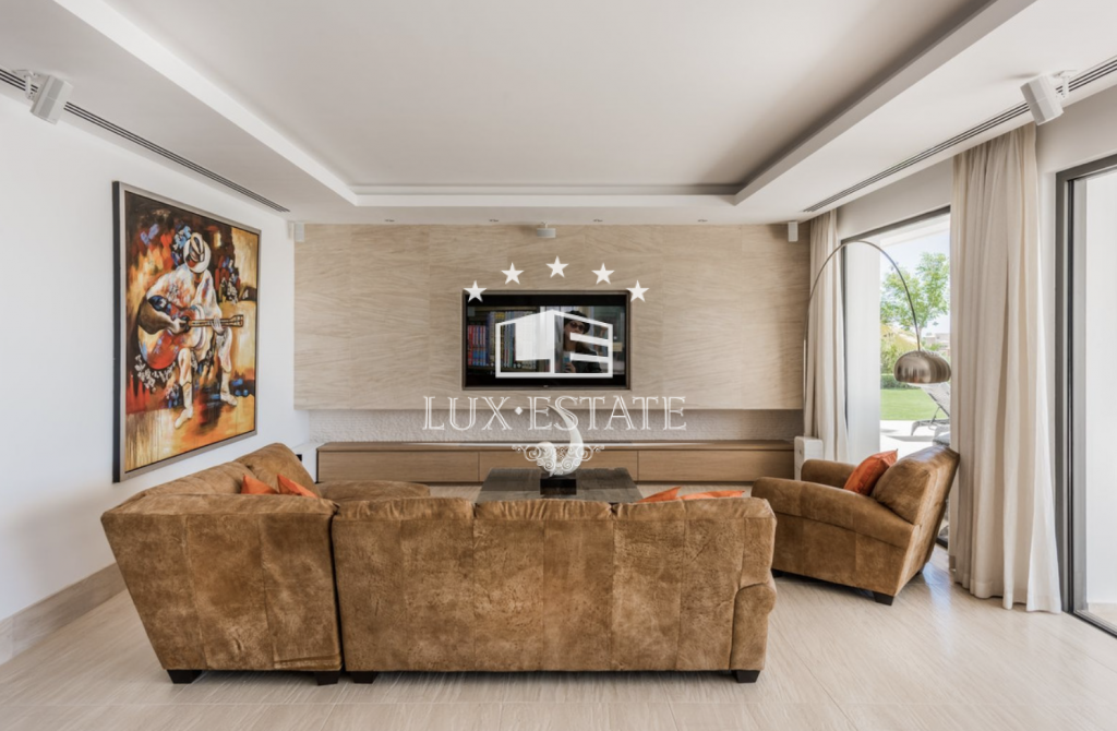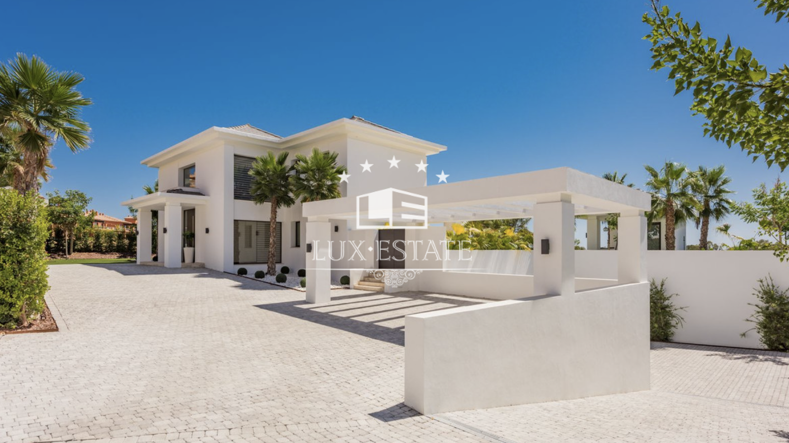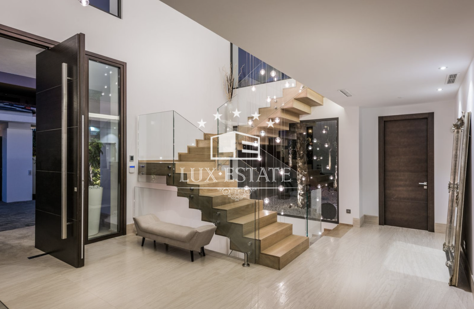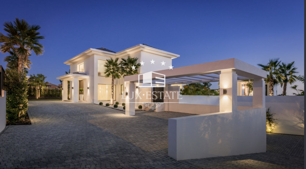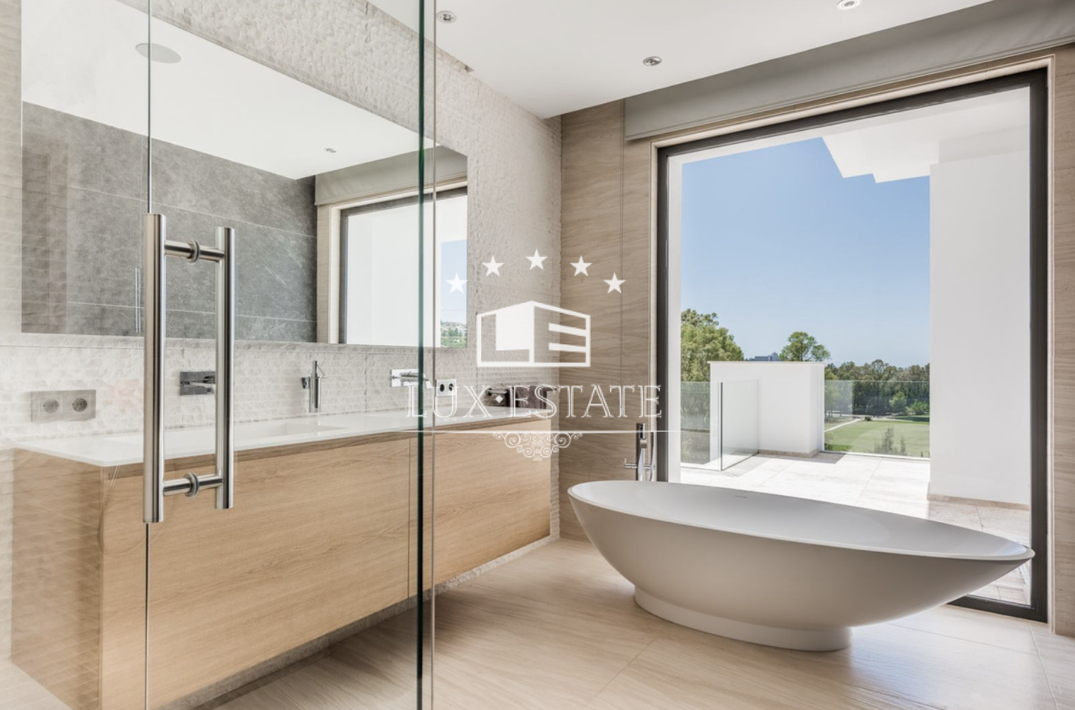 This exquisite home was recently finished by award-winning architects ARK and showcases the finest finishes and qualities available. The property enjoys a golf-view elevated position within the gated community of La Alqueria which conveniently provides 24 hour security for its residents. Entering the property by the front door gives access to a grand hallway with double heigh ceiling and a feature staircase made from natural wood and glass. Passing through the hallway you will enter a large living room with outstanding views across the infinity pool towards the golf course. To the right you will find a dinning room area and fully equipped designer kitchen. On this level there is also a guest suite with access to the garden. Moving up to the first level you will find three further bedroom suites including the grand master suite that boasts a luxurious bathroom and walk in dressing room. All bedrooms on this level enjoy access to a large terrace with views across the golf course towards the sea. There is also a private office space for comfortable home-working. The basement level is home to a 2 bedroom suite guest apartment as well as a spacious gym and games room which could also be used as a home-cinema. The indoor garage is also accessed through this level and houses a 9KW state-of-the-art solar battery. Perhaps the most impressive feature of this residence is the plot, measuring an impressive 2,445m2, something that is hard to find in this specific location. Spacious areas to the east and west of the property allow for garden games, sun bathing and relaxing. There is a fully fitted BBQ kitchen, outdoor dining and chill-out areas to enjoy all year round. The infinity pool is an impressive signature feature of this residence and provides an overwhelming sense of calm and tranquility to the garden. The area of La Alqueria is just a stones throw away from popular golf courses such as Atalaya Golf as well as all the hotspots of Marbella, Nueva Andalucia, Benahavis and Estepona. The transfer time to Malaga international airport is just 45 minutes and local supermarkets and amenities are all under 5 minutes drive.
