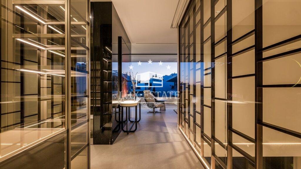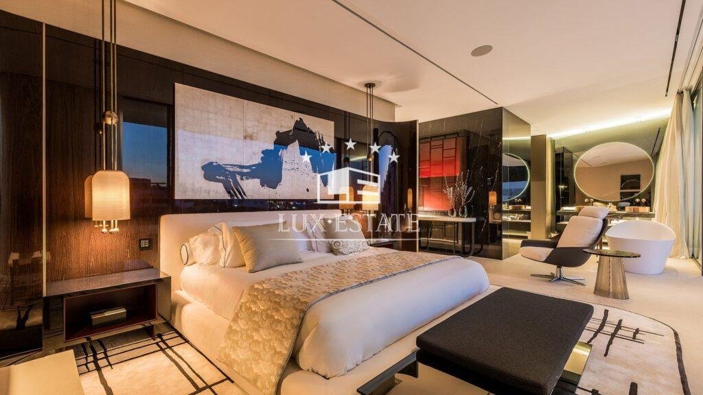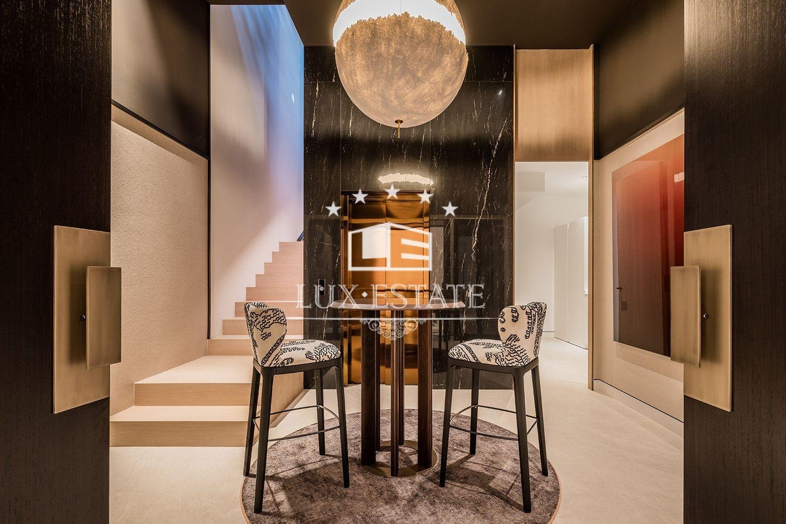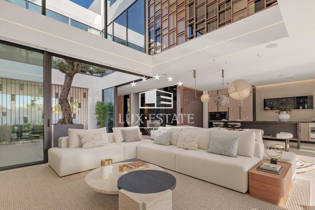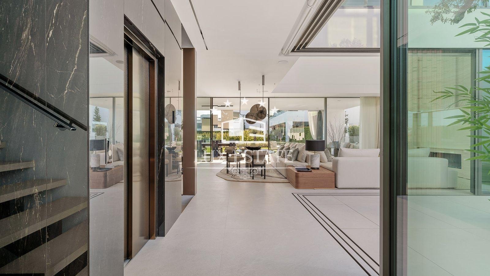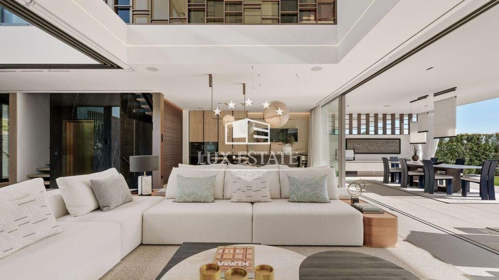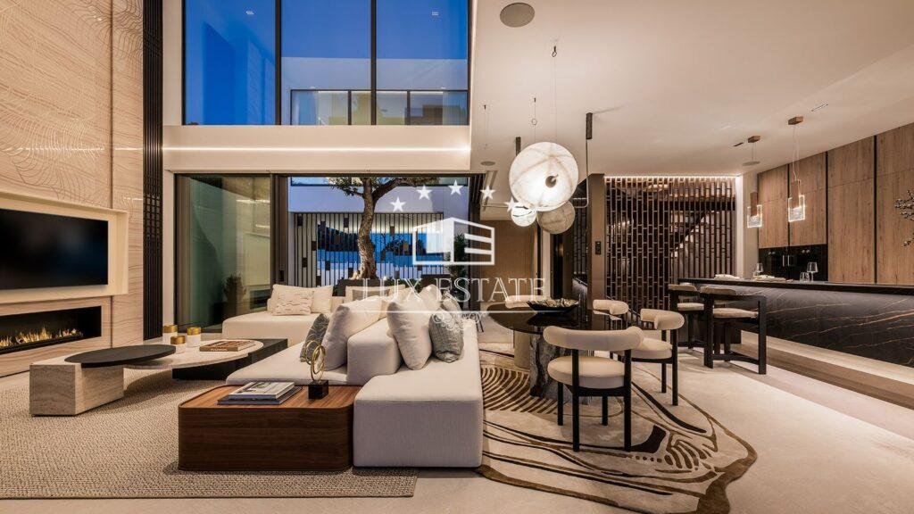 Spread across four impeccably designed floors connected by a private elevator, the villa welcomes you with a stunning double-height living area that fills the space with natural light and grandeur. This impressive room flows effortlessly onto a beautifully designed terrace, perfectly suited for enjoying the best of indoor–outdoor Mediterranean living.