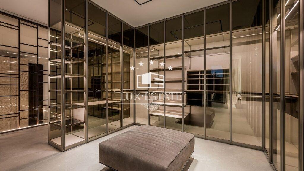For year-round comfort, the villa is equipped with hot/cold air conditioning, underfloor heating throughout, a built-in sound system, and secure fingerprint access. Underground parking accommodates up to four large cars.