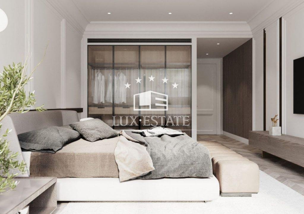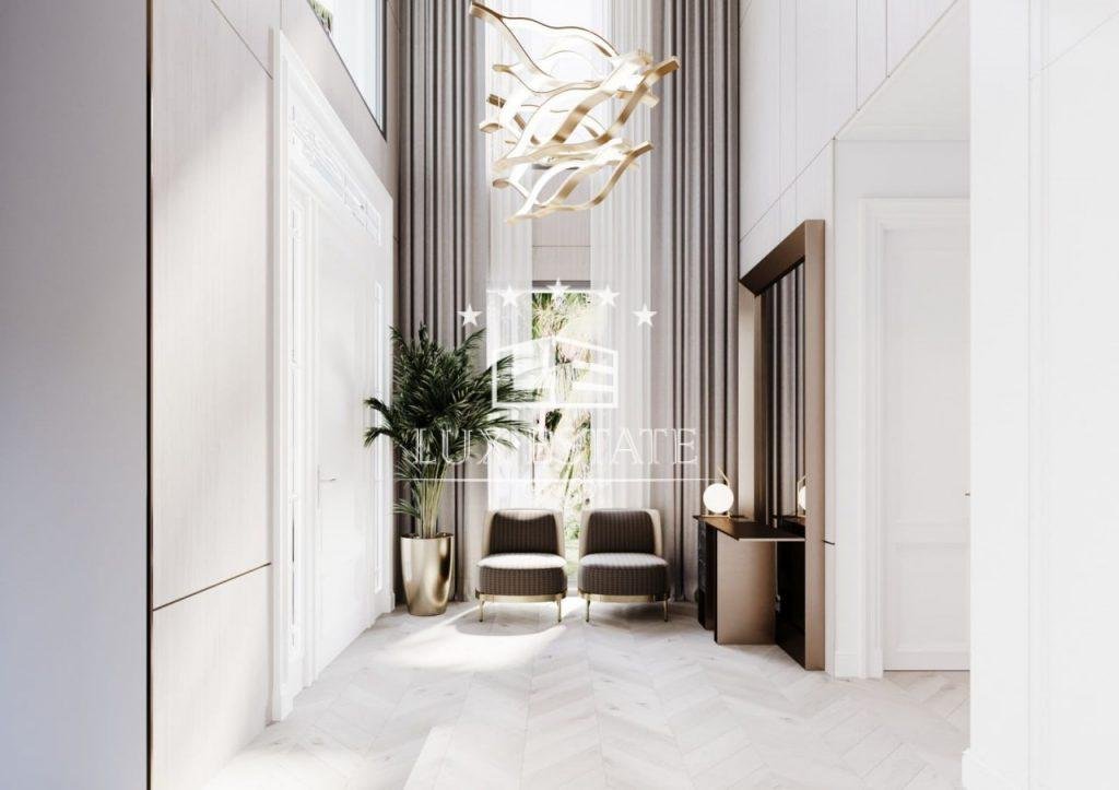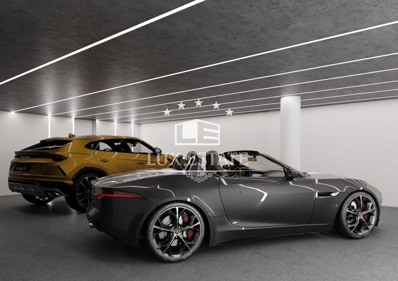 Additionally, on the top floor of the house, beyond the entertaining areas in the garden, there lies a solarium with an area designated for an outdoor gym. Glass curtains enclose this space, which also includes fabulous covered and uncovered lounge areas. Moreover, due to its height, this floor offers