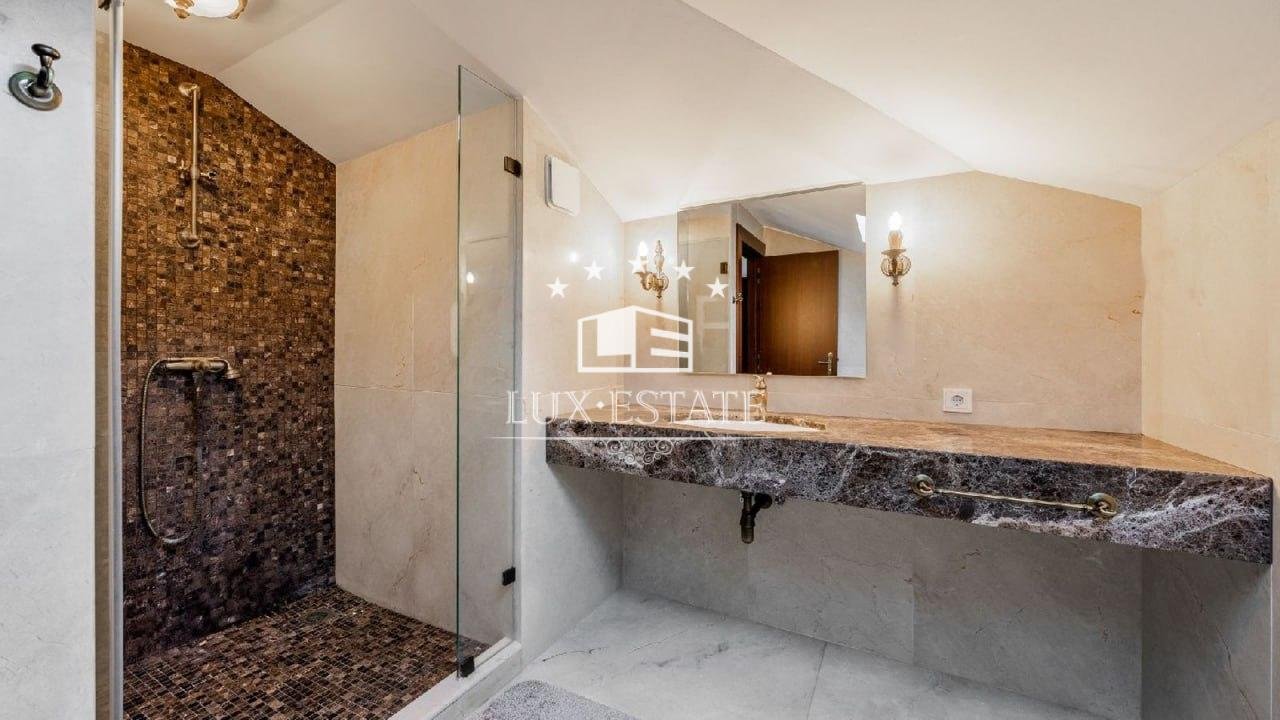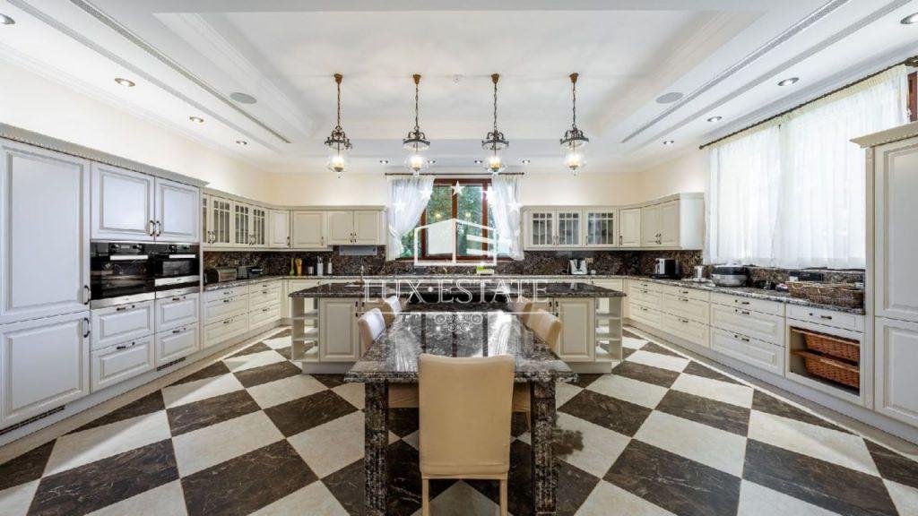 The serene garden views house comes in excellent condition, complete with glass doors, fitted wardrobes, double-glazing, a Domotic system, beautiful wooden elements, magnificent marble and wood floors with underfloor heating (by water), speakers for music in every room, air conditioning, solar panels, electric shutters, an alarm, and 14 surveillance cameras outside. All aspects can be managed through a phone.