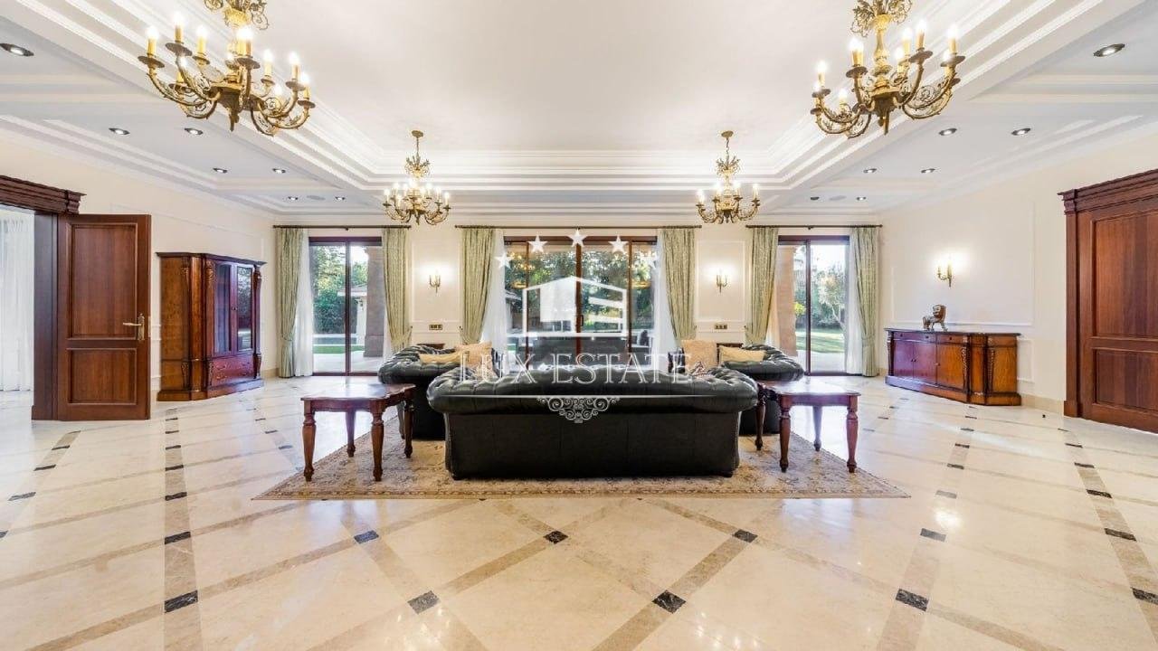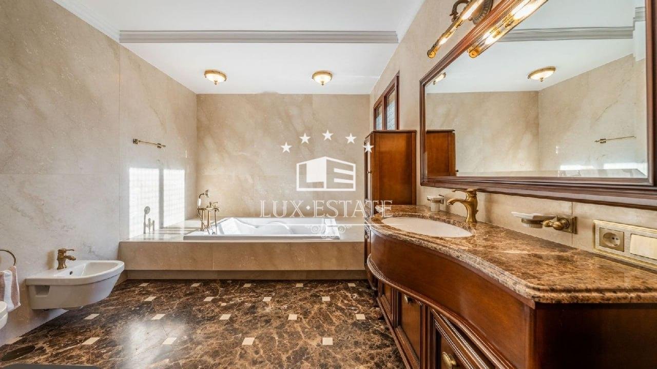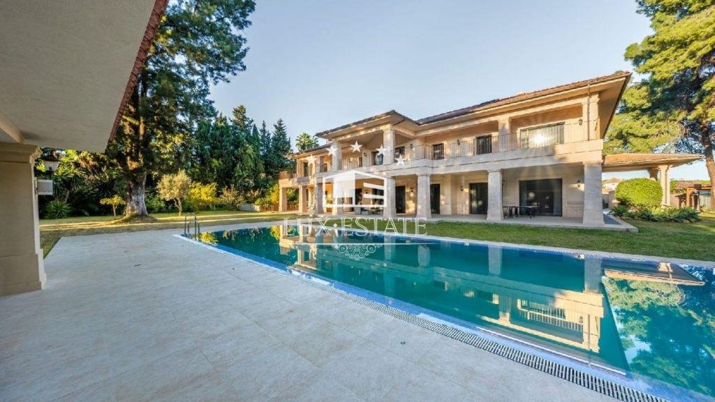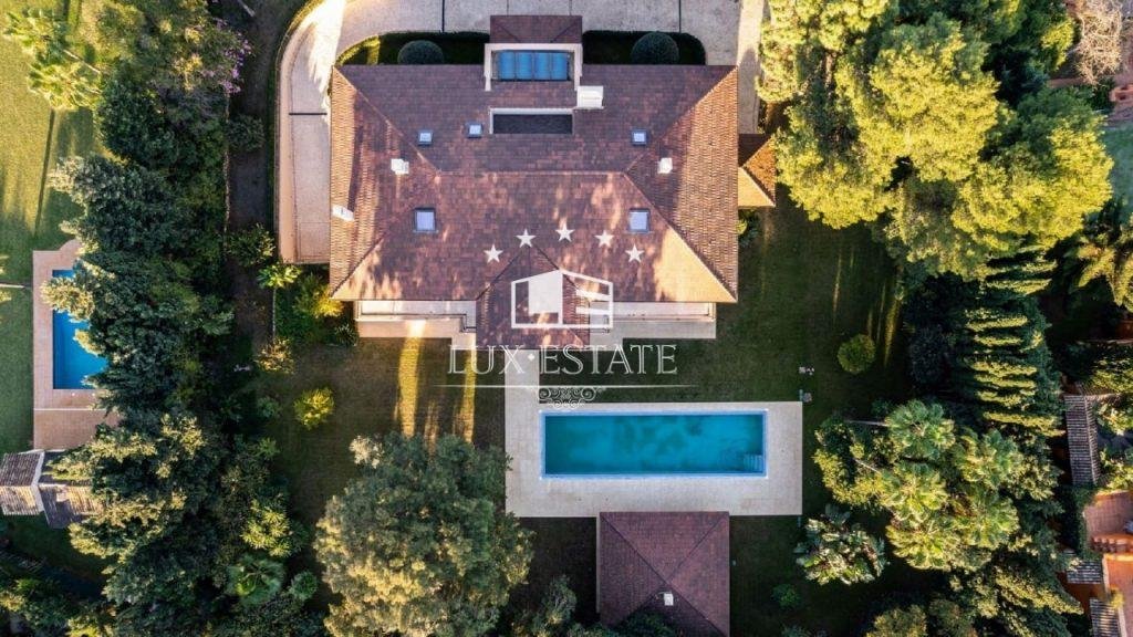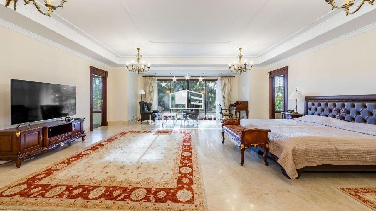 Set on a 1.469 square meter plot, the south/west-facing mansion spans 1,018 square meters and boasts three levels serviced by a lift. A grand entrance hall features a double-height ceiling and leads to a spacious office adorned with intricate ceiling details. The property includes a living room, a TV lounge complete with fireplace, and a separate dining room with access to a covered terrace as well as the swimming pool area which comes with pre-installation for heating. Additionally, there is another covered terrace fitted with a fully equipped outdoor kitchen and sauna. The charming pavilion adds elegance and is ideal for outdoor family dinners, get-togethers, barbecues, refreshments, and cocktails. Returning to the house, you’ll find a guest bathroom and a spacious, beautiful kitchen fully equipped with Miele appliances, including a double fridge and wine fridge. The first level includes two spacious guest bedrooms with en-suite bathrooms and fitted wardrobes, along with a grand Master bedroom that boasts a terrace, two en-suite bathrooms, and separate ‘his’ and ‘hers’ fitted wardrobes. Moving up to the second level, you’ll find two guest bedroom suites with their own bathrooms, a games room, and a private terrace. The basement is home to a staff apartment, guest restroom, two storage areas, a wine cellar, laundry room, gym, technical and machine spaces, and a separate entrance, as well as a garage that accommodates up to six cars. There is a carport for four cars at this high-end house, surrounded by beautiful nature and luxury properties in Guadalmina.