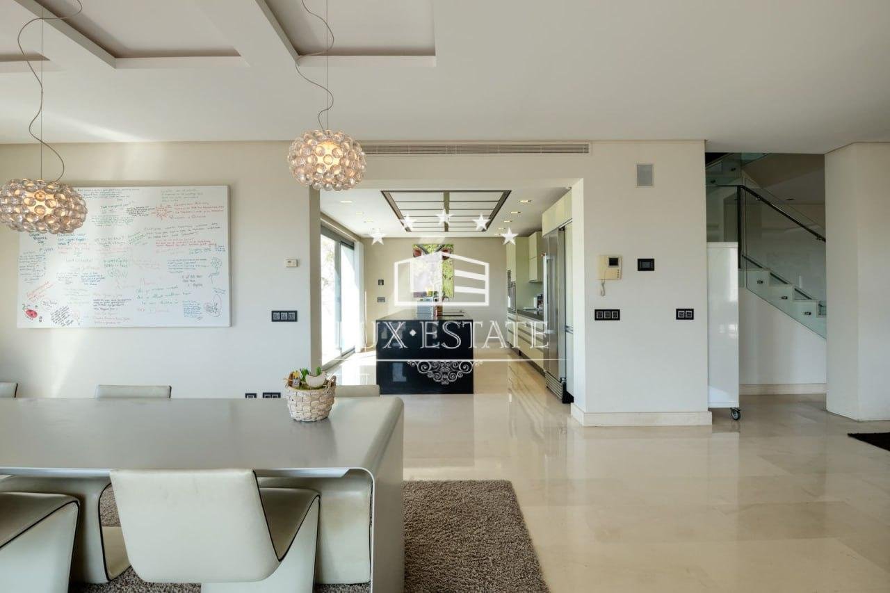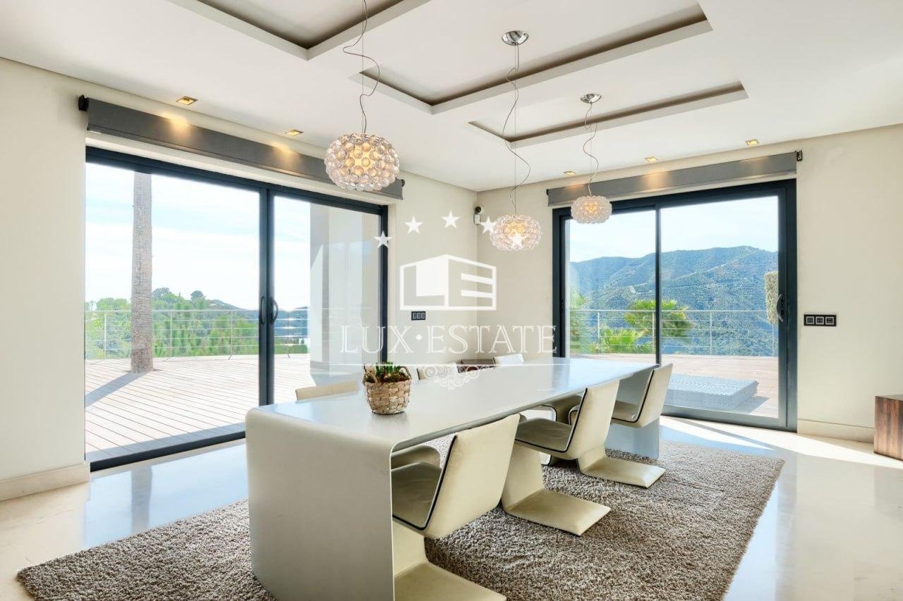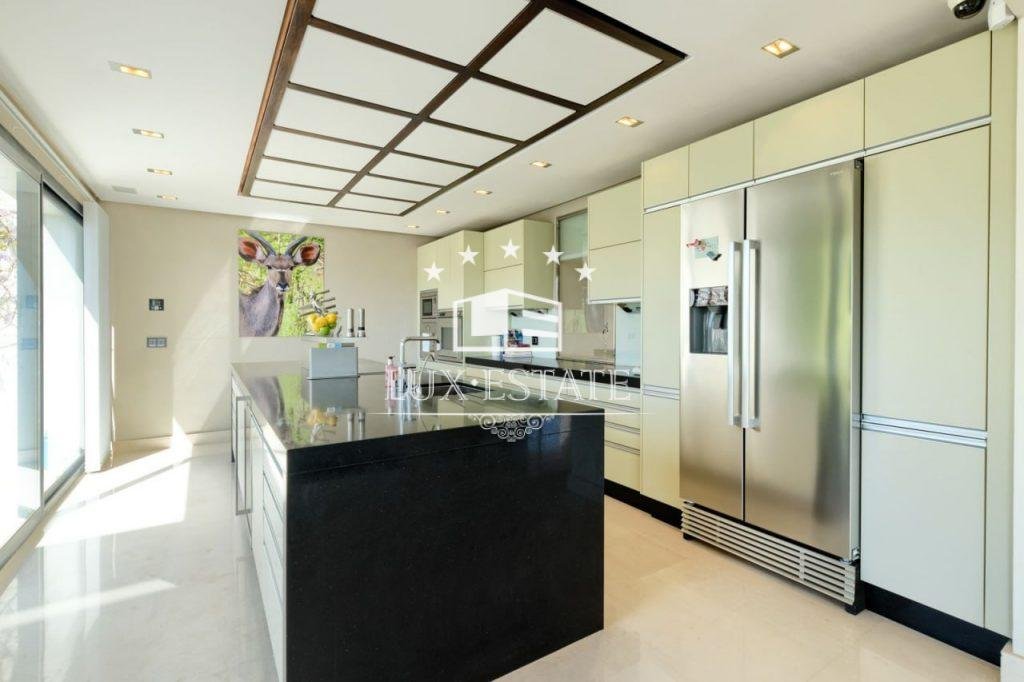Main floor: Spacious living and dining area with a gas fireplace and direct access to the grand terraces of high-pressed bamboo and panoramic views. Open-plan fully fitted kitchen with Gaggenau appliances. Guest bathroom and one guest bedroom with en suite bathroom.