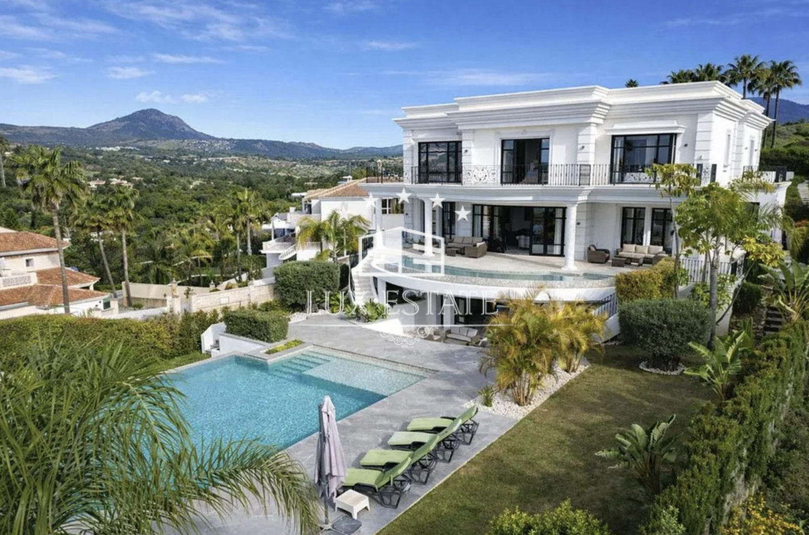 Set in the exclusive residential area of La Alquería, Benahavís, this exceptional three-level villa blends timeless classical architecture with elegant contemporary interiors. Enjoying a privileged elevated position, the property offers breathtaking panoramic views across the golf course, valley, mountains, and the Mediterranean Sea — creating a lifestyle defined by privacy, serenity, and sophistication.