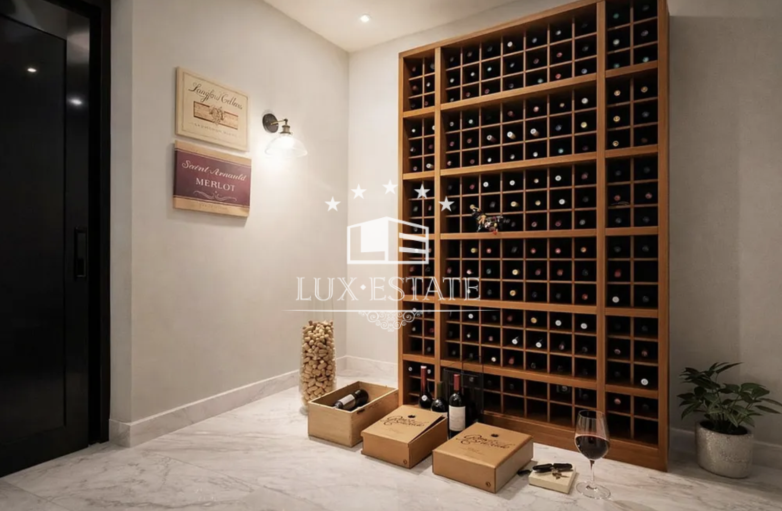 This level also includes a separate staff apartment, extensive storage areas, and a private garage for two cars, ensuring both practicality and convenience.