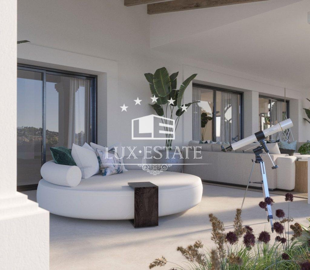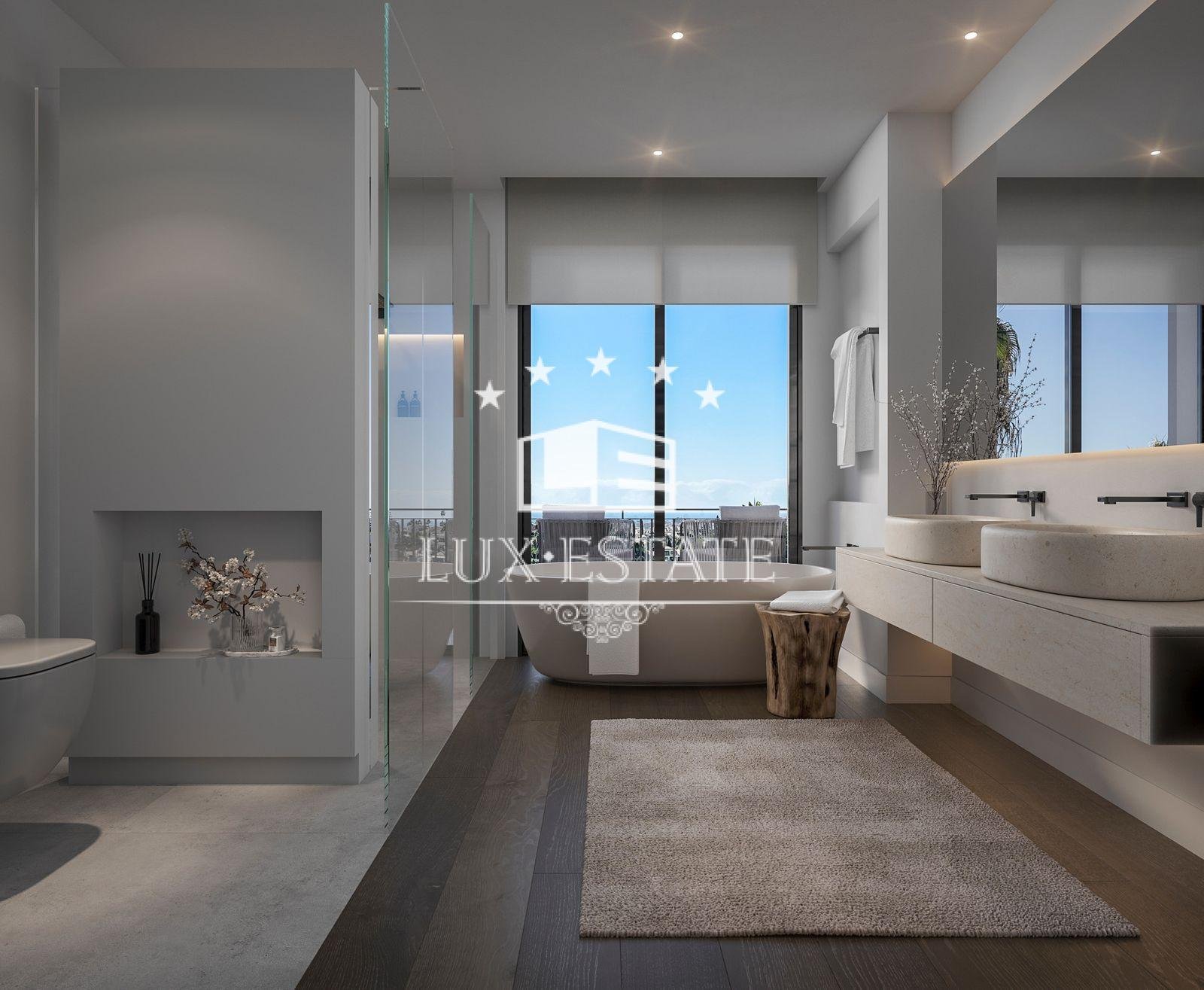 This magnificent 5-bedroom villa in Marbella offers luxurious living with stunning panoramic ocean views. The expansive interior showcases an open-plan kitchen seamlessly integrated with the living space. Entertainment enthusiasts will appreciate the villa’s private cinema. The property is equipped with a water-based underfloor heating system throughout the entire house. Additionally, a heated swimming pool outside provides relaxation for all.