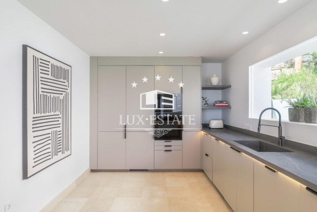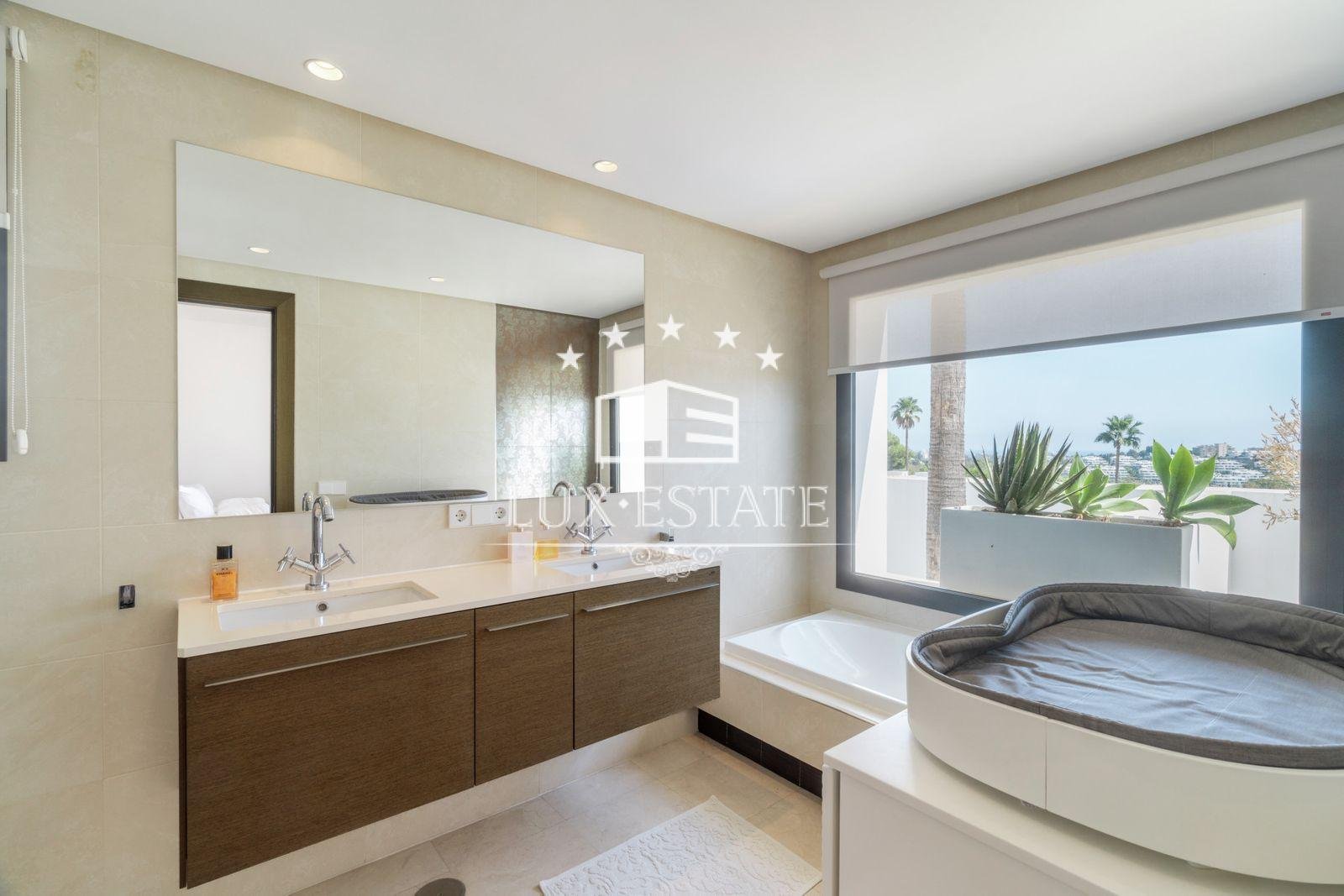 Occupying a 595 m² plot and featuring 448 m² of interior space, the villa stands out as one of the largest in the community, boasting the best panoramic views. It offers 5 bedrooms, each (except one) with an en-suite bathroom, plus a guest toilet.
