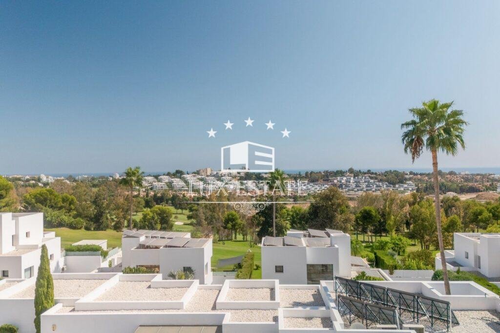 This elegant corner villa, situated within the secure gated communities of Atalaya Fairways and La Alquería, combines modern architecture, functional design, and exceptional privacy. Perfectly positioned next to the main security gate, the property benefits from 24-hour surveillance, on-site guards, and patrols — offering one of the safest residential environments on the Costa del Sol.