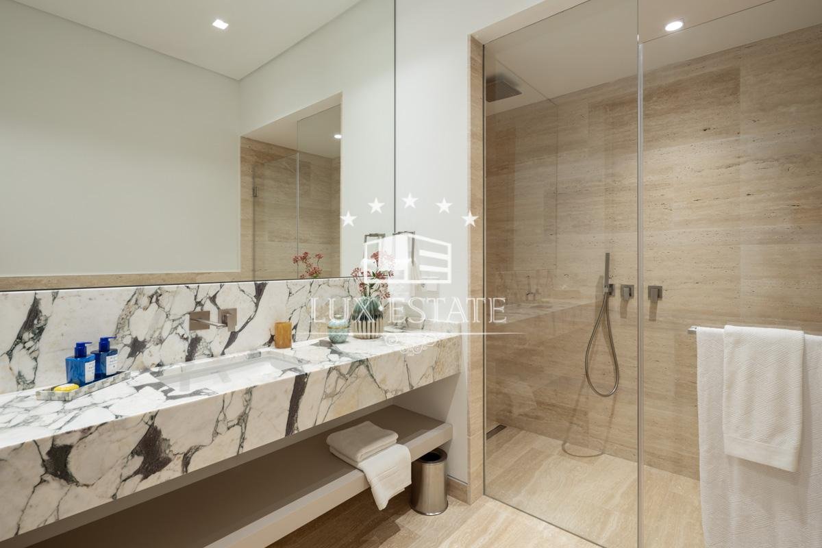 The interiors are finished to the highest standards, featuring a refined neutral color scheme, top-of-the-line appliances, custom cabinetry, and elegant flooring throughout. The minimalist yet warm design ensures the perfect canvas for personal style and luxury living.