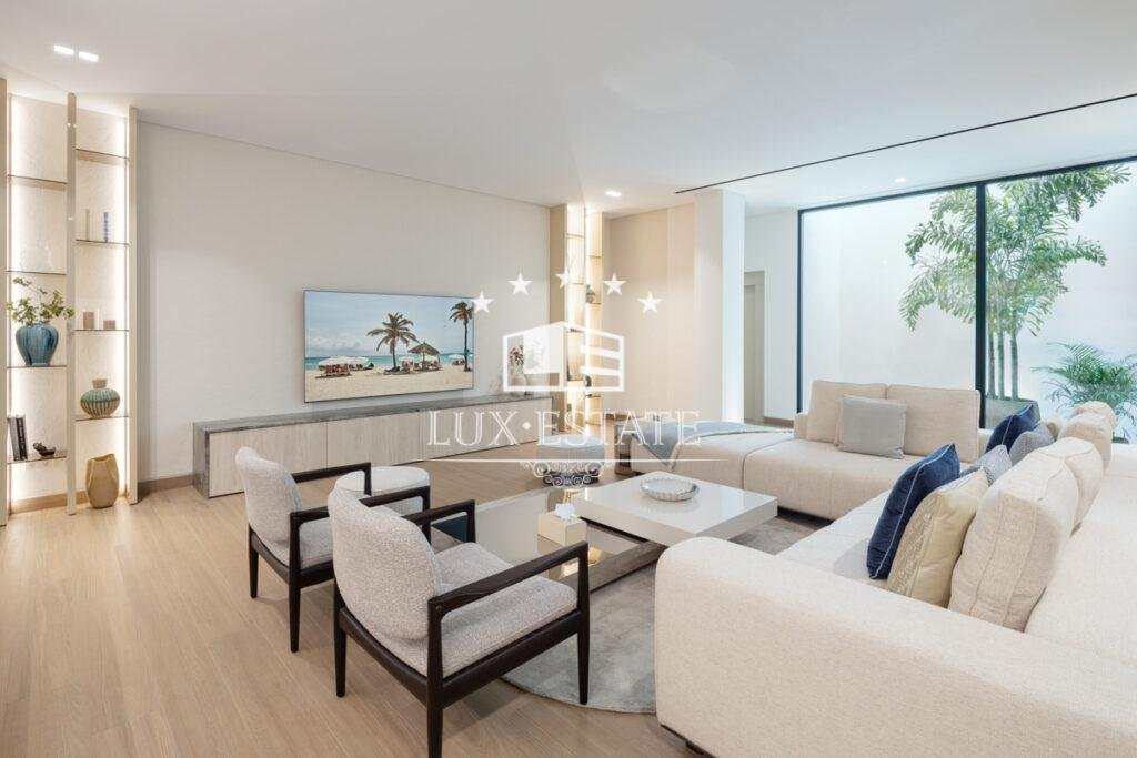 With six beautifully appointed bedrooms—each designed as a private retreat—the villa offers the perfect balance between space, privacy, and style. The master suite is a standout, with a private terrace, walk-in wardrobe, and spa-inspired en-suite bathroom.
