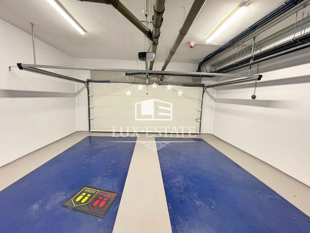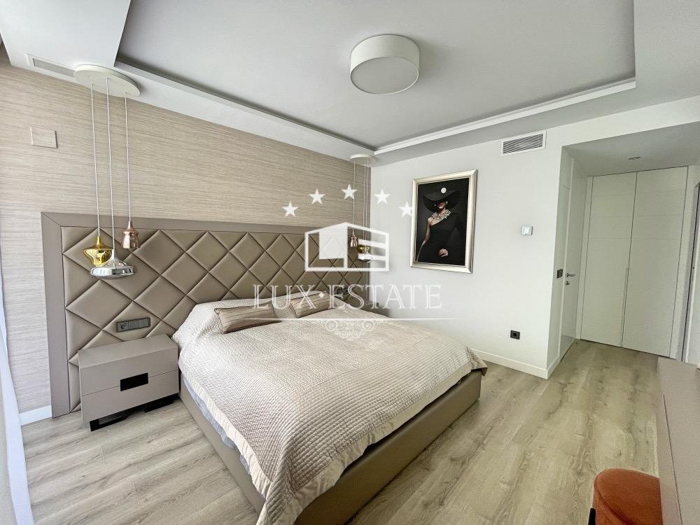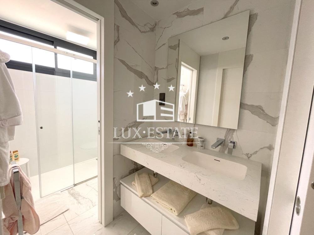A functional planning solution provides for a spacious kitchen-dining room on the ground floor with access to a covered terrace and a private pool, a guest bathroom; on the second floor there are two bedrooms with en-suite bathroom and wardrobes, a master-bedroom with a private bathroom, wardrobes and access to the terrace; on the lower level there are two free-use rooms with their own bathroom, a laundry room, storage room, wardrobes, access to a garage for two cars. On the top level you can find a solarium with barbecue area and jacuzzi with a stunning view of la Concha mountain. This villa also have an elevator all levels, home automation system, aerothermics, electric blinds, gated community, security entrance.