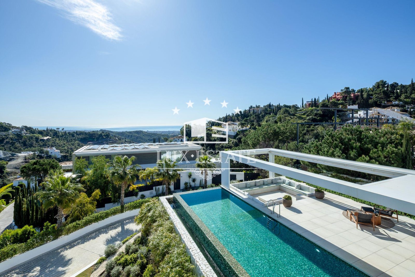 Villa Sienna is a sophisticated modern residence located in the prestigious gated enclave of El Madroñal, nestled in the serene hills above Marbella. This exceptional property seamlessly blends contemporary architecture with luxurious comfort and panoramic views of the Mediterranean Sea. Thoughtfully crafted by AMES Architect, every aspect of the villa emphasizes quality, functionality, and harmony with its natural surroundings.