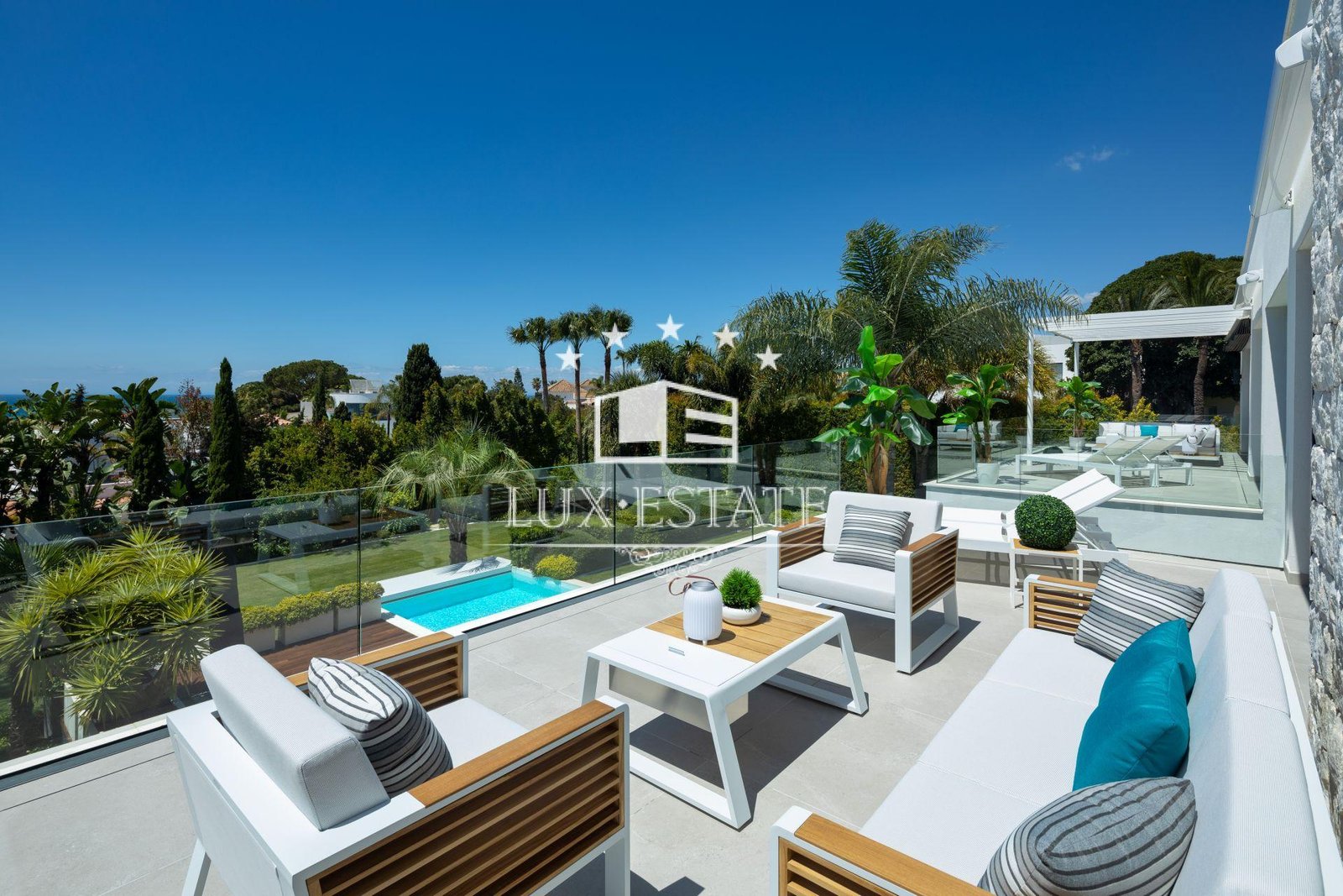 Set within a beautifully manicured garden, the villa provides lush greenery for added privacy and serenity. The private 14m outdoor pool is ideal for year-round enjoyment, while the generous terraces are perfect for alfresco dining and stylish relaxation. Seamless transitions between interior and exterior spaces are made possible by convenient ground-floor terrace access.