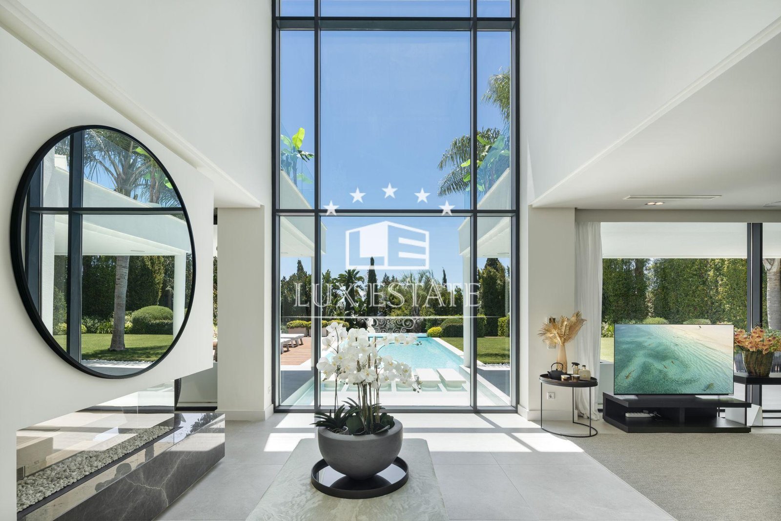 Villa Natura is more than a home; it epitomizes luxury and sophistication. Inside, the villa boasts a double-height living area with two-story windows that capture breathtaking views of the manicured garden and the 14m heated swimming pool. The interiors showcase meticulous attention to detail, featuring natural stone walls and a state-of-the-art kitchen equipped with modern appliances and a sophisticated island.