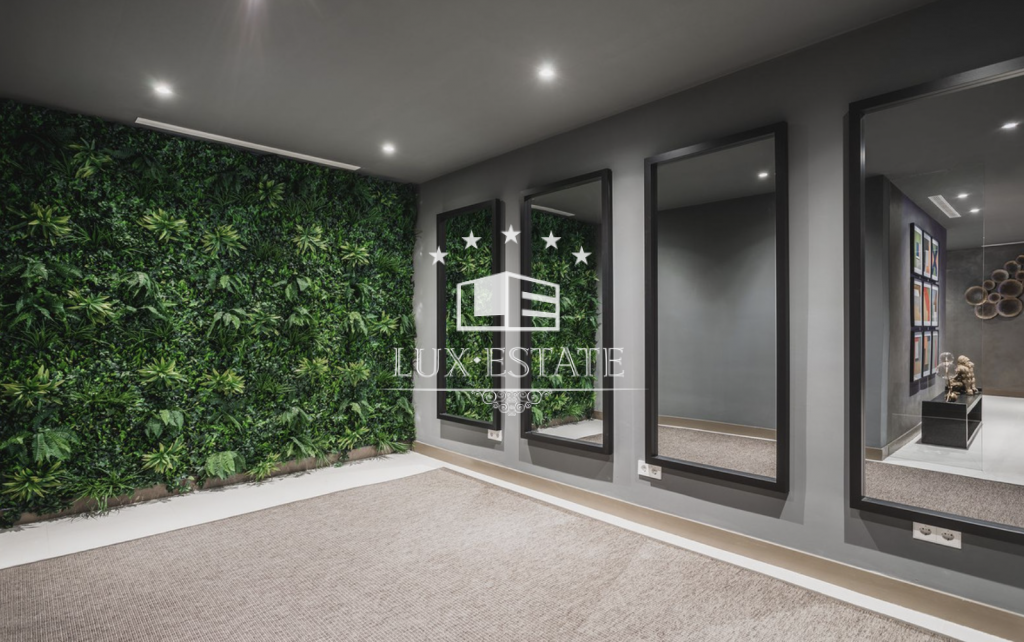 The villa is built on three floors and has a south-east orientation, comprising on the ground level a spacious and stylish open plan living and dining area with integrated modern and practical kitchen built with high-end German appliances, combining smart technology with warm architectural design. The living area has access to the terrace and the private garden and private swimming pool. The bedrooms have en-suite bathrooms, electric blinds and wooden floors, and underfloor heating throughout the property, giving the homes a feel of warmth and elegance, combining functionality and comfort. The spacious multi-purpose basement can be fully customised with the possibility to build further bedrooms, gym, games room, study, etc. In addition, there are 2 / 3 covered parking spaces for each villa. This villa is completed and ready to move in.