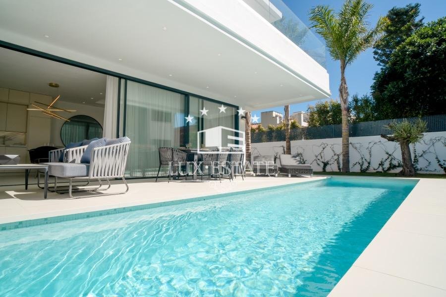 New modern detached villas are located in one of the elite areas in Marbella – Beach Side Golden Mile, in a closed urbanization Rio Verde, just 100 meters from the beach. The unique feature of these villas is the perfect combination between the stunning location and profitable price. Each mansion consists of 4 bedrooms, 5 bathrooms, spacious terraces on each floor, which are ideal for making barbecue and meeting with friends. A private pool will keep you cool during the long Spanish summer.