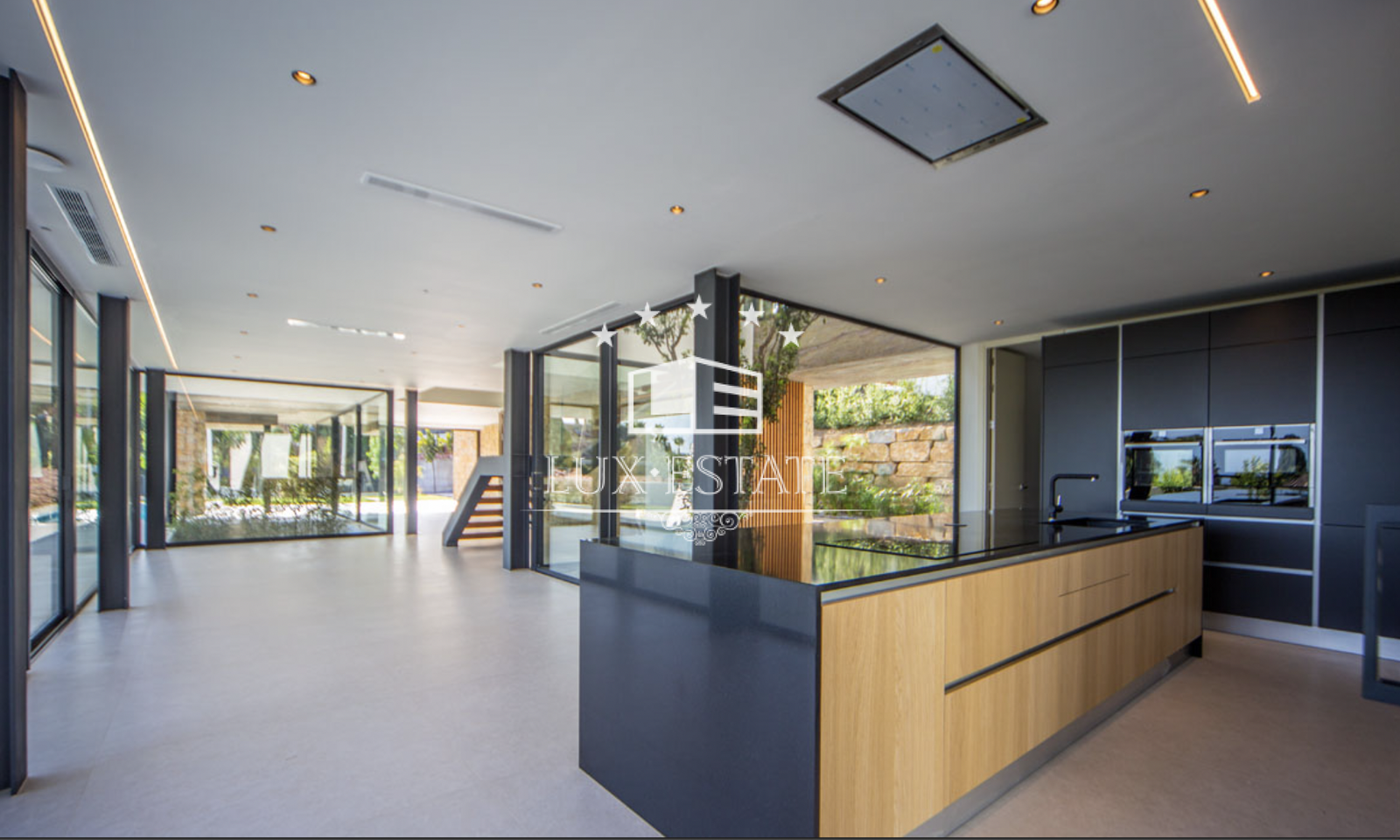 This new built villa is divided into 3 levels, with a total of 578 m². The main floor is very spacious, so all the spaces have a good size. We find the living room, followed by the dining area, kitchen and a guest toilet, all located in an open plan concept with large windows, most of them opening onto the garden and swimming pool, also allowing for a magnificent view. Next to the kitchen, although in a separate room, there is a pantry. On the upper floor there are 4 bedrooms in total, all of them with en-suite bathrooms and fitted wardrobes. In addition, the spacious master bedroom has a jacuzzi which can be enjoyed on its private covered terrace. The entire floor enjoys great sea views. The large basement has natural light and ventilation. Thanks to its large size there is a laundry room, a storage room and a machine room, as well as the possibility to consider occupying the remaining space with a gymnasium, a games room or a 5th bedroom. The villa has plenty of outdoor space, thanks to this, we find the already mentioned garden, the swimming pool and different outdoor patios that could perfectly be converted into dining and/or outdoor living areas. There is also a carport with enough space for 2 cars. Located in a privileged area such as the Golden Mile, with all services nearby (supermarkets, shops, transport services, etc), the city centre is only 5 minutes away by car, and thanks to the easy access to the motorway, you can also be in Puerto Banus in about 7 minutes approximately.