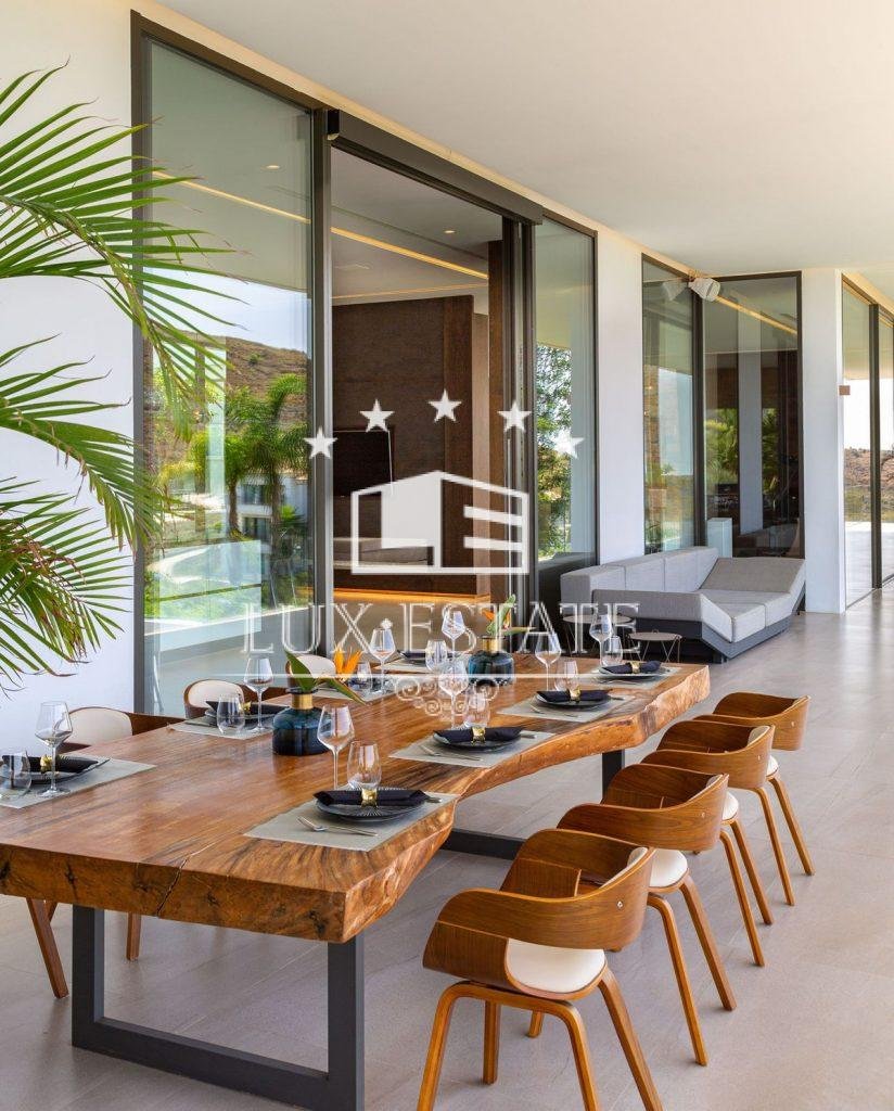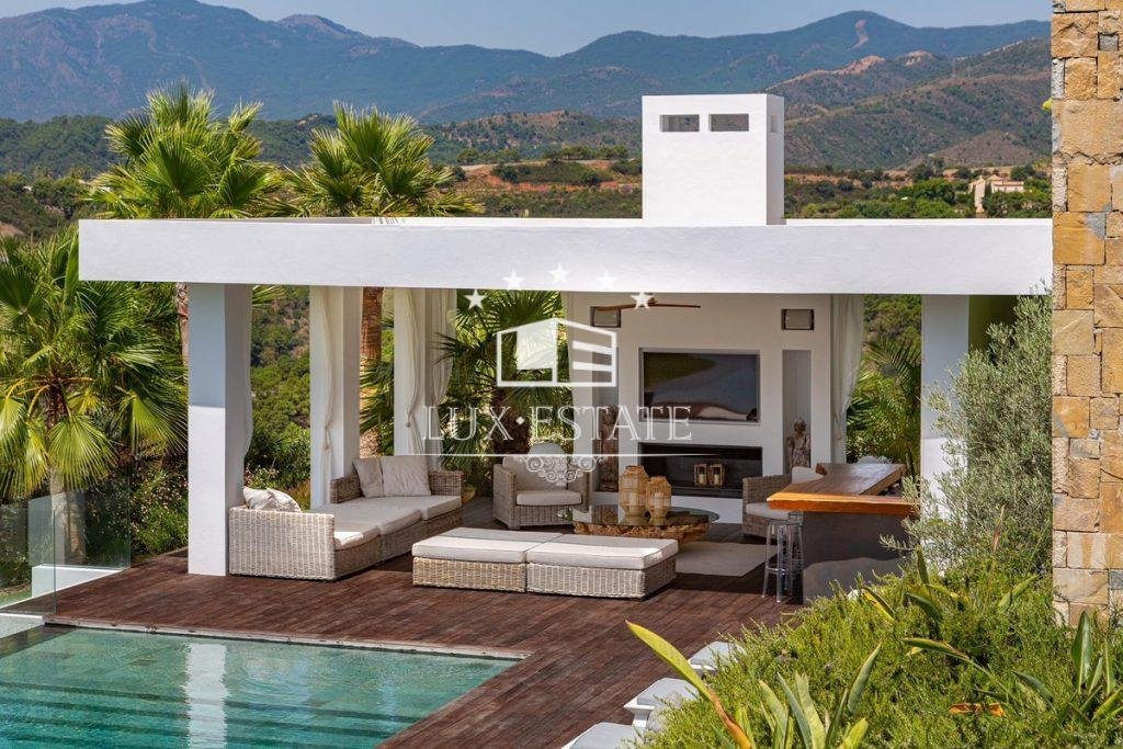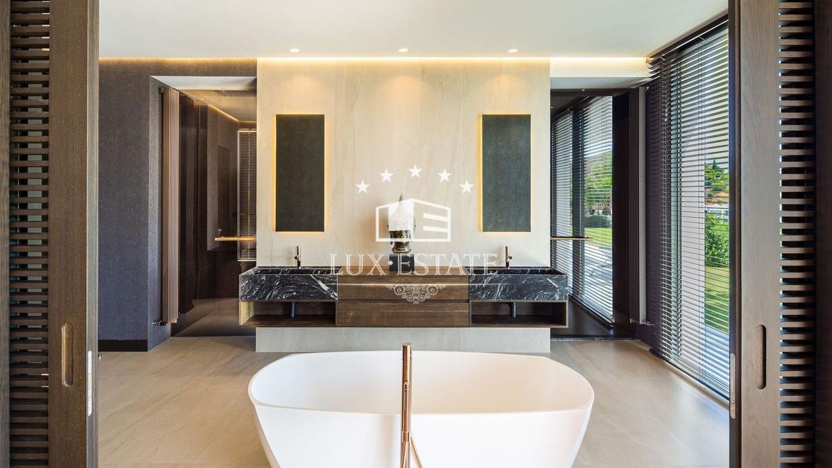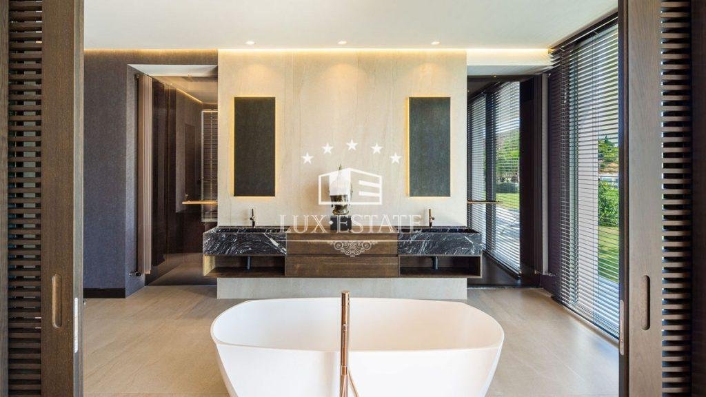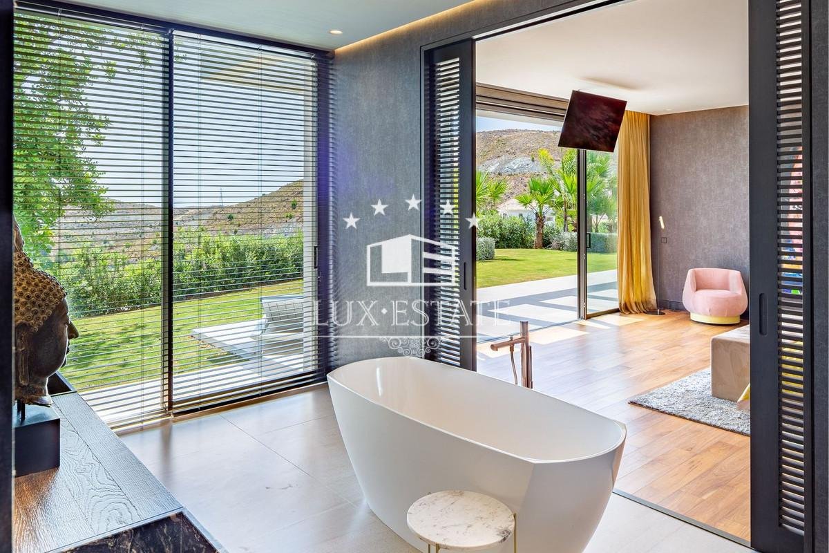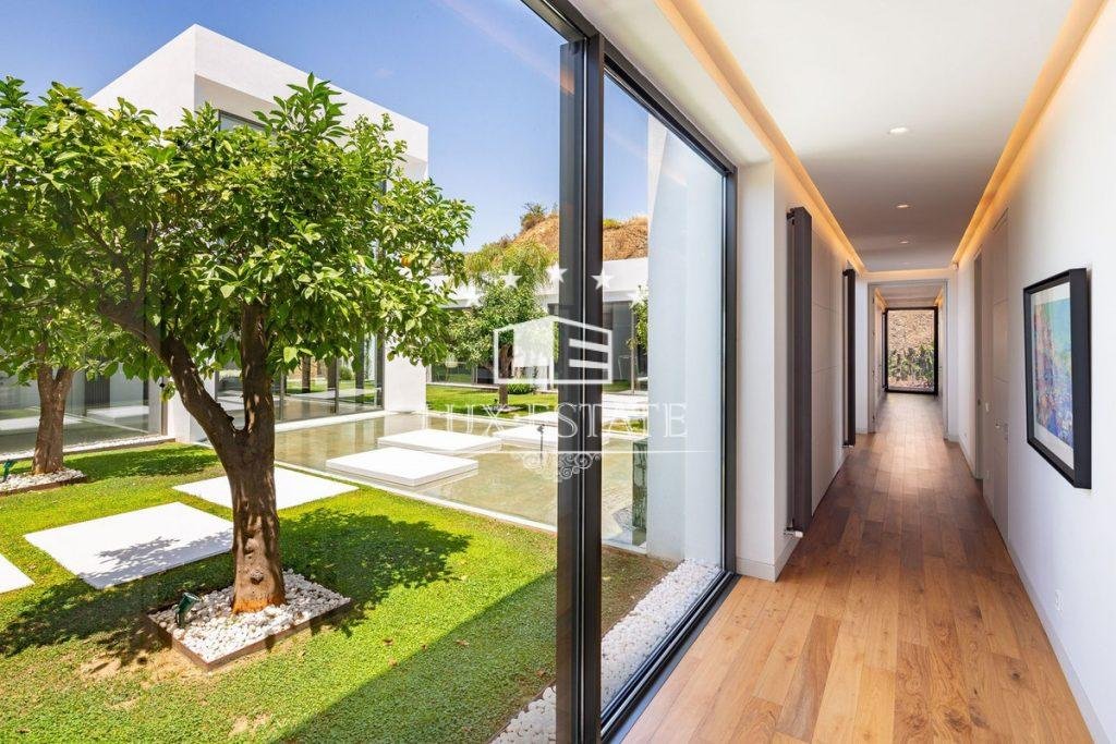 Outstanding contemporary villa frontline golf in Marbella Club Golf Resort with panoramic sea and mountain views. This fabulous Villa built on a plot of 6000m2 and with 1370m2 built, offers you 6 bedrooms and 9 bathrooms, fully fitted kitchen, central heating, integrated sound system, Domotic system and separate staff quarters.
