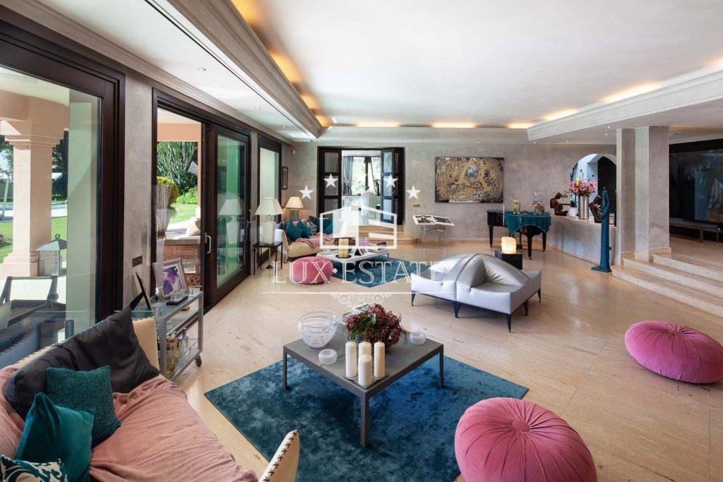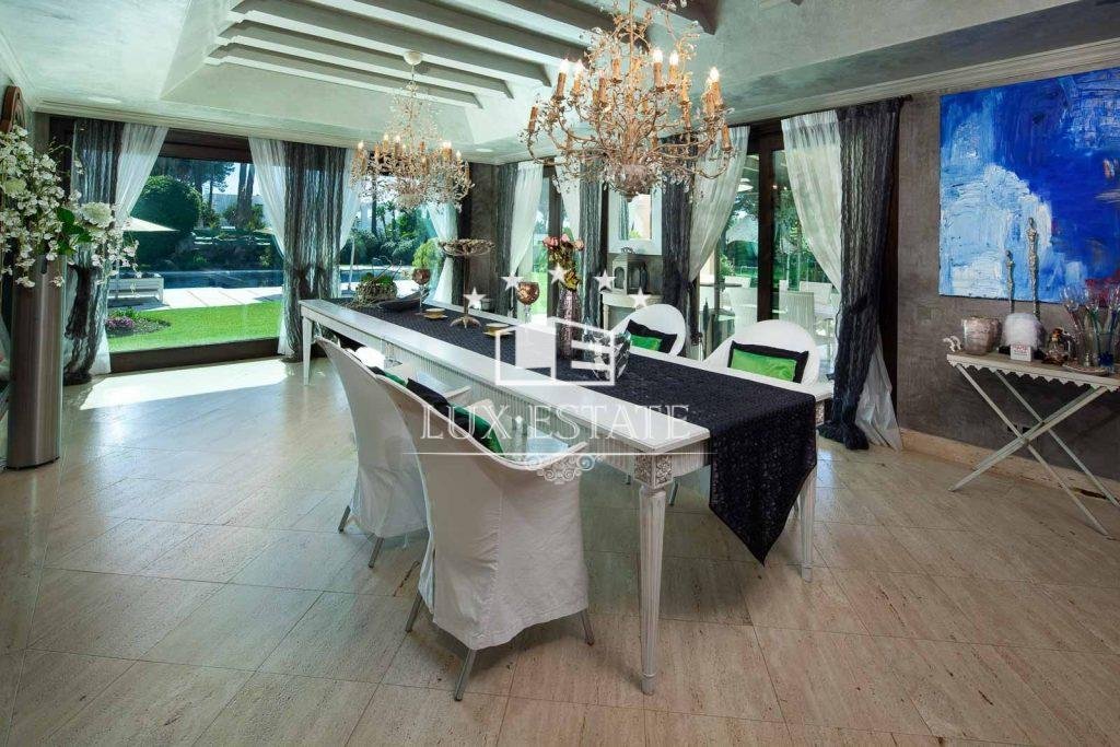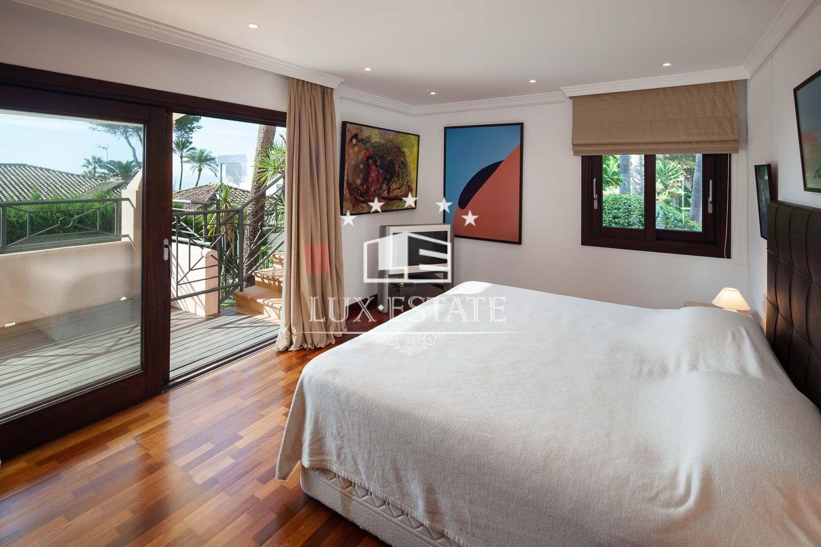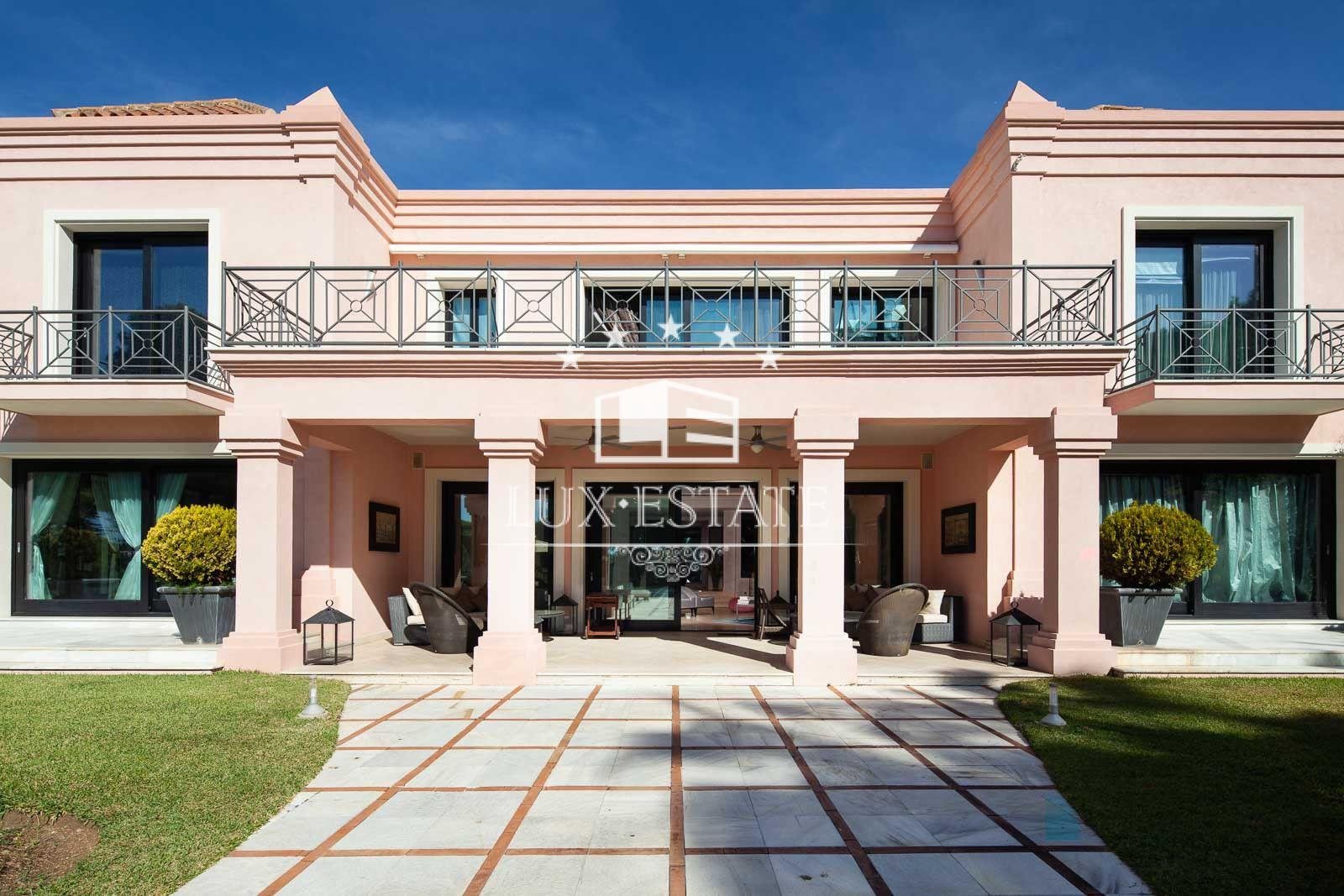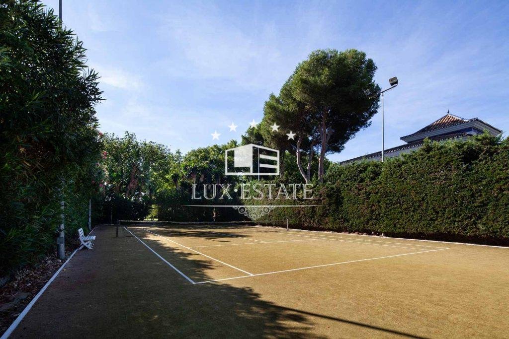 Stunning beachfront villa in Paraiso Barronal, Estepona. The villa boasts a south-facing orientation and occupies a prime location, just moments from the beach and a 7-minute drive to the luxurious Puerto Banus harbour. The property spans two storeys and includes on the ground floor a capacious foyer; a commodious living and dining area with entrance to the covered terrace, beautifully landscaped garden and pool; an impeccably equipped kitchen with high-end appliances and terrace access; an en-suite guest bedroom; a TV-cinema room; and a guest lavatory. On the first floor, an en-suite master bedroom awaits with a walk-in closet, seating area and a private terrace; as well as three additional en-suite guest bedrooms; a gym; and a sauna. The villa features a guest house with stunning panoramic sea views. The three-story building includes two en-suite guest bedrooms on the ground floor, two additional en-suite guest bedrooms on the first floor, and a rooftop solarium. Additional features comprise of a staff residence with a living room, fully equipped kitchen, and two bedrooms including a shared bathroom; hot and cold air conditioning; underfloor heating throughout; automatic irrigation system; outdoor BBQ and bar; tennis court with lighting, synthetic grass and automatic irrigation; smart home system. The property possesses a potential permit to construct a 1,000 m2 dwelling on the land. There are proposals to restore the villa, available upon request.