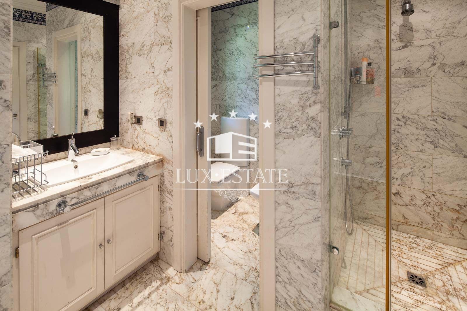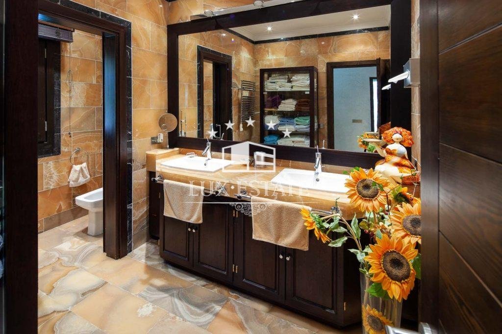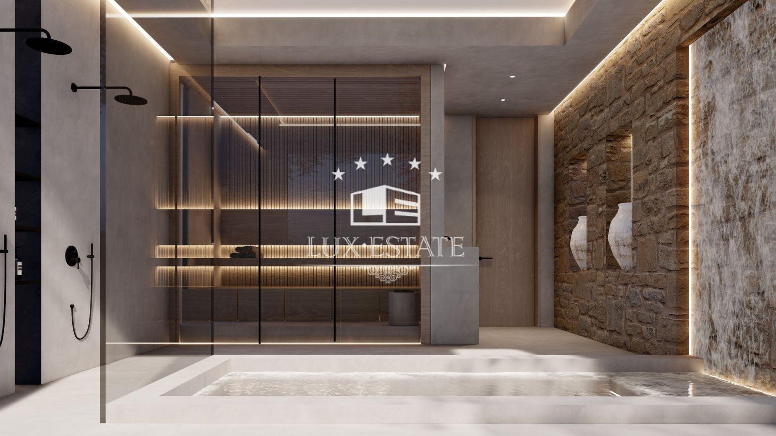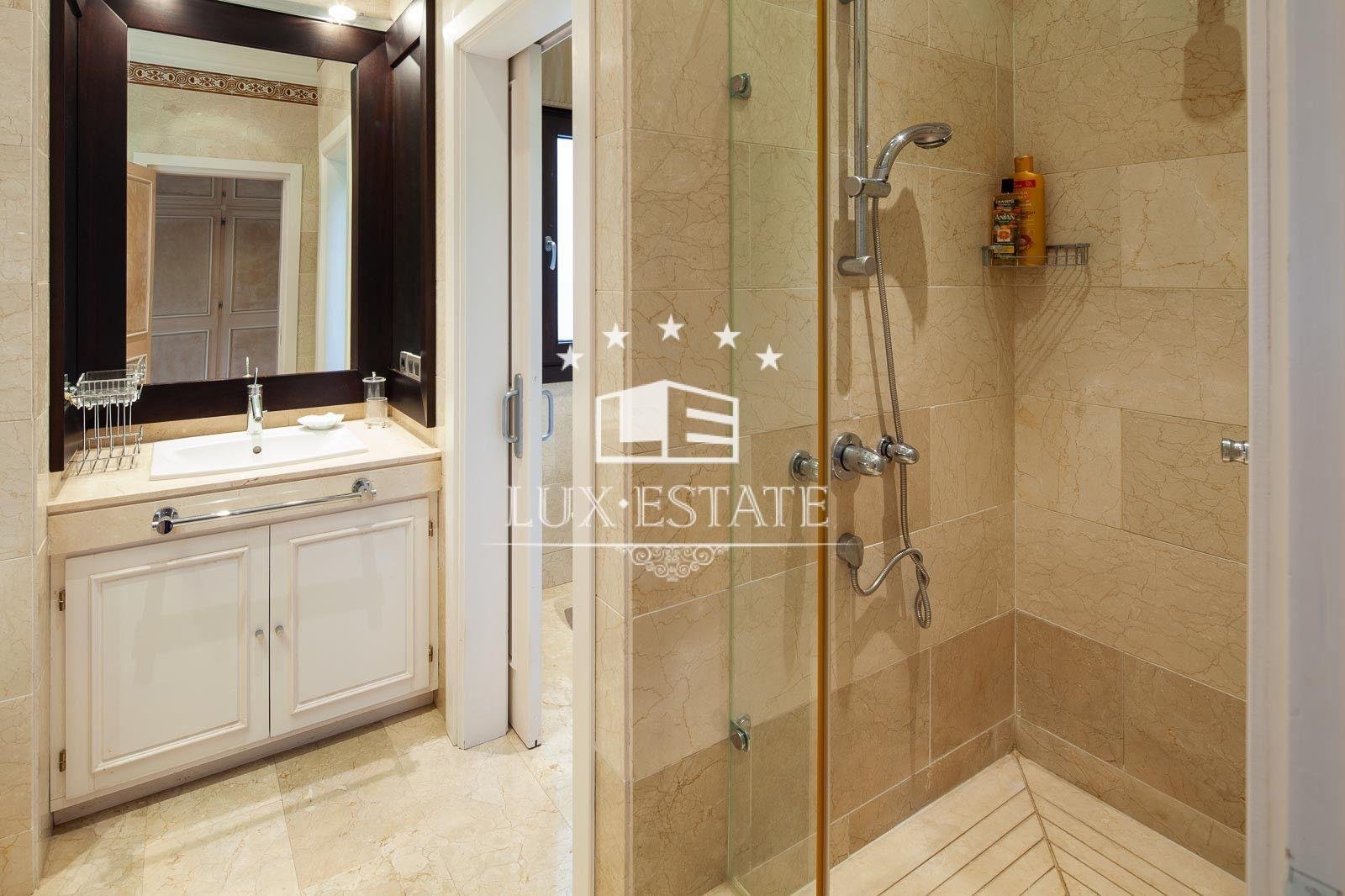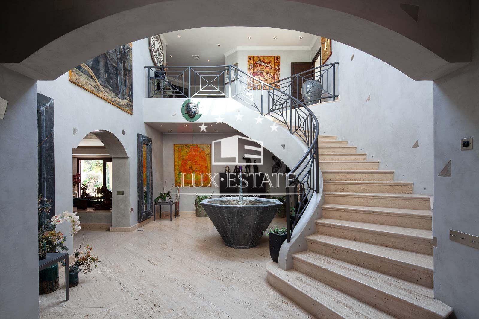 Stunning beachfront villa in Paraiso Barronal, Estepona. The villa boasts a south-facing orientation and occupies a prime location, just moments from the beach and a 7-minute drive to the luxurious Puerto Banus harbour. The property spans two storeys and includes on the ground floor a capacious foyer; a commodious living and dining area with entrance to the covered terrace, beautifully landscaped garden and pool; an impeccably equipped kitchen with high-end appliances and terrace access; an en-suite guest bedroom; a TV-cinema room; and a guest lavatory. On the first floor, an en-suite master bedroom awaits with a walk-in closet, seating area and a private terrace; as well as three additional en-suite guest bedrooms; a gym; and a sauna. The villa features a guest house with stunning panoramic sea views. The three-story building includes two en-suite guest bedrooms on the ground floor, two additional en-suite guest bedrooms on the first floor, and a rooftop solarium. Additional features comprise of a staff residence with a living room, fully equipped kitchen, and two bedrooms including a shared bathroom; hot and cold air conditioning; underfloor heating throughout; automatic irrigation system; outdoor BBQ and bar; tennis court with lighting, synthetic grass and automatic irrigation; smart home system. The property possesses a potential permit to construct a 1,000 m2 dwelling on the land. There are proposals to restore the villa, available upon request.