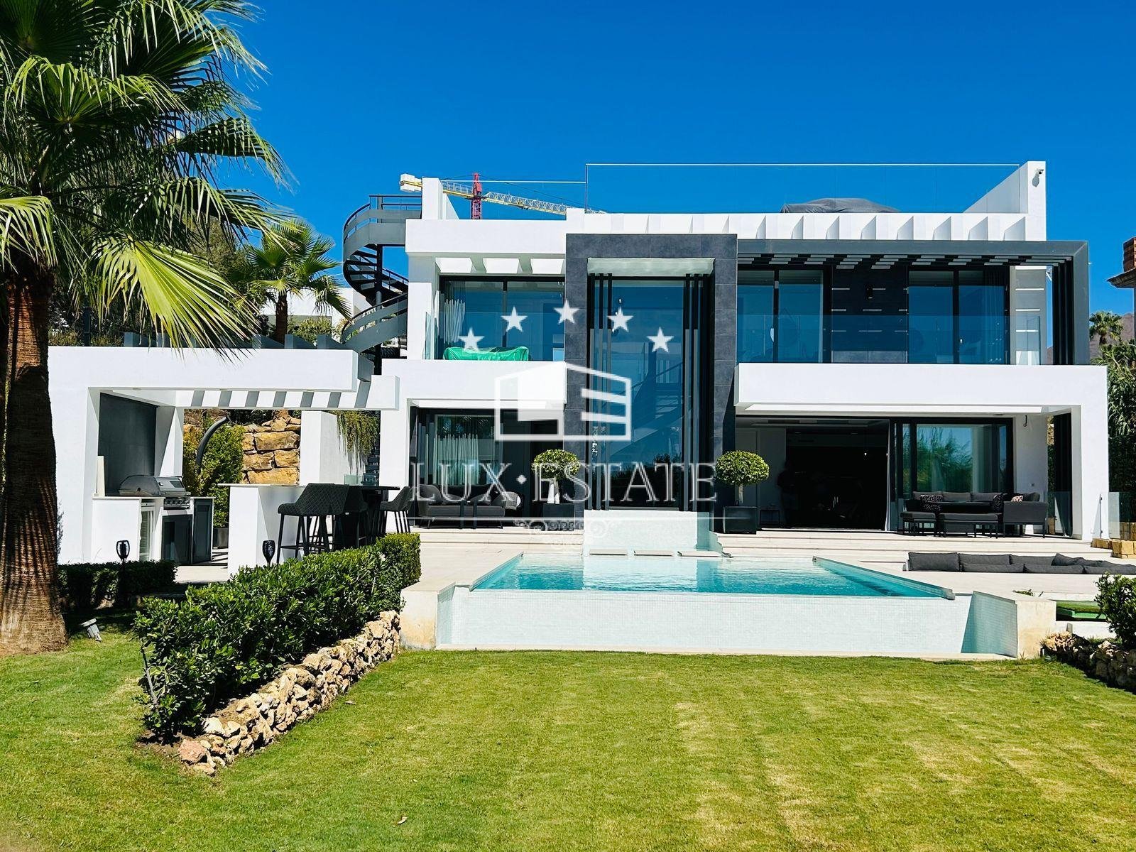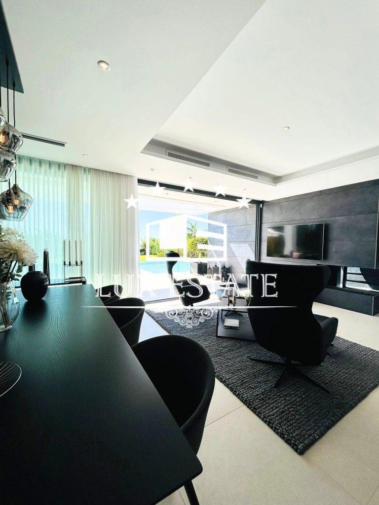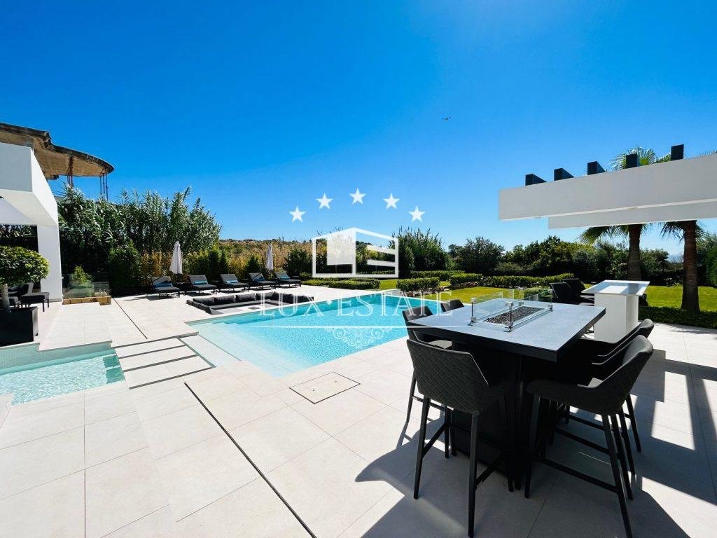 7. Upscale Finishes and Extras: No detail has been overlooked in creating this exceptional villa. It features top-of-the-line finishes, modern architecture, and a seamlessly integrated array of textures and materials. Air conditioning systems with separate controls are available in each room, while outdoor kitchens feature refrigerators, gas BBQs, and hot/cold taps. The property also has photovoltaic panels, a chill-out area with a fireplace, and a Bang & Olufsen outdoor garden speaker system. There is a demotic system that controls the lights, air conditioning, solar panels, and the heat pump of the swimming pool, as well as an automatic irrigation system, CCTV, and many other luxurious extras.