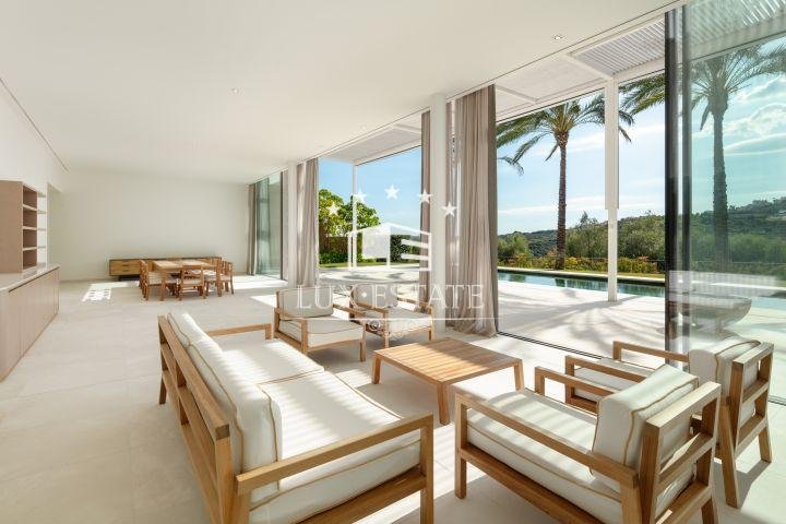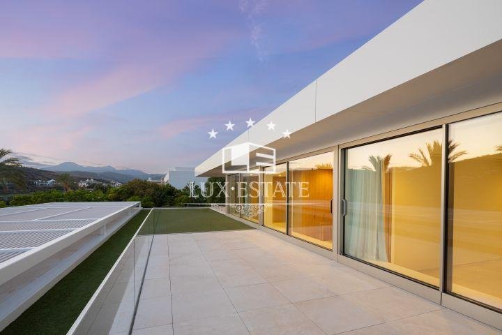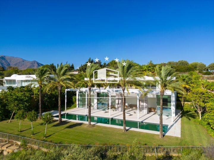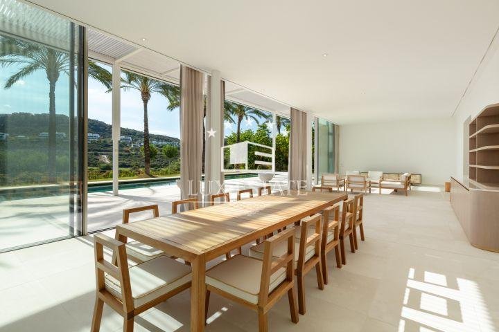 This stunning villa represents the pinnacle of high-end golf course living. The property itself is an unparalleled architectural feat, unmatched on the Costa del Sol. Nestled within a vast golf course, the villa boasts capacious floor-to-ceiling windows that inundate the interiors with an abundance of natural light and reveal breathtaking panoramas of the Finca Cortesin golf course and the Mediterranean Sea from an elevated position. Encircled by verdant vegetation, privacy and serenity are assured. With ample outdoor terraces and convenient garden access from each room, this property maximises the comfortable climate that characterises this corner of the world. The capacious swimming pool, with its stunning aquamarine tiles, beckons guests for a dip, while luxuriant palm trees create shade and an aesthetically pleasing backdrop for relaxation. The interior design exudes sophistication, with every detail meticulously thought out and crafted from the finest materials, resulting in unrivalled levels of luxury. The splendid kitchen, furnished with state-of-the-art Gaggenau appliances, is a culinary haven where functionality perfectly merges with visual appeal. Most of the bedrooms are situated on the ground floor, providing captivating vistas of the golf course across two levels. The opulent principal bedroom is positioned on the top floor, offering an exclusive retreat for inhabitants to savour. The grounds’ landscaping represents an exquisite masterpiece, boasting a pond at the home’s entrance, ornamented with rich flourishing vegetation that conjures a calming ambiance and fosters a harmonious connection to the natural realm. This architectural marvel enjoys a preeminent location on the first golfing line, within one of Spain’s most prestigious resorts: Finca Cortesin.