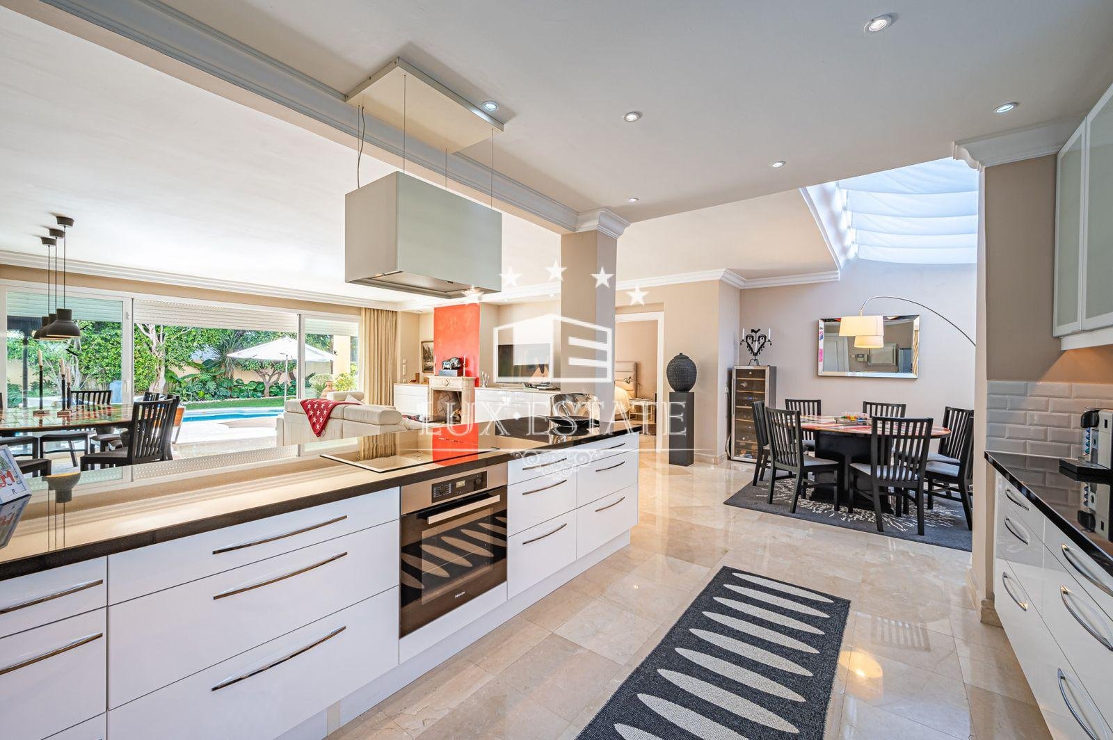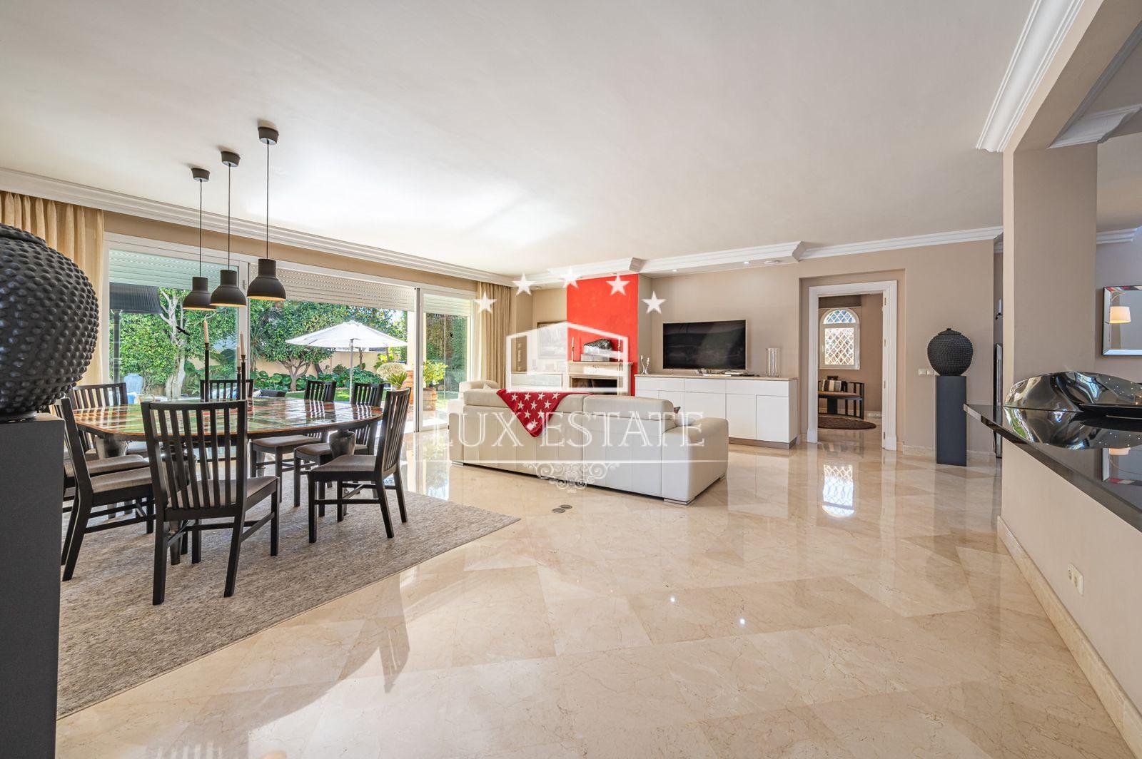 This exquisite villa in the sought-after beachside location of Casablanca, Marbella offers an unparalleled blend of opulence and seclusion. Boasting a capacious 388m2 footprint, the abode features five bedrooms and three stylish bathrooms. The thoughtful design, incorporating an airy open-plan layout, caters perfectly to all lifestyles. Positioned on the prestigious Golden Mile, mere steps from the charming promenade, esteemed supermarkets, banks, a pharmacy, and an array of other amenities. This is an exceptional opportunity to reside in a chic locale, just next to the beach and near the finest areas in town, Puerto Banus, and a stone’s throw from the Golf Valley.