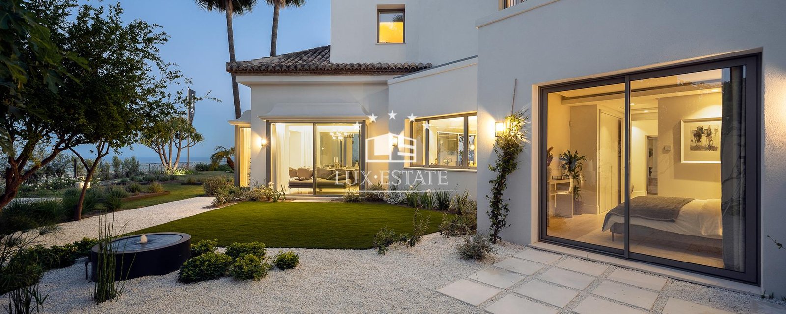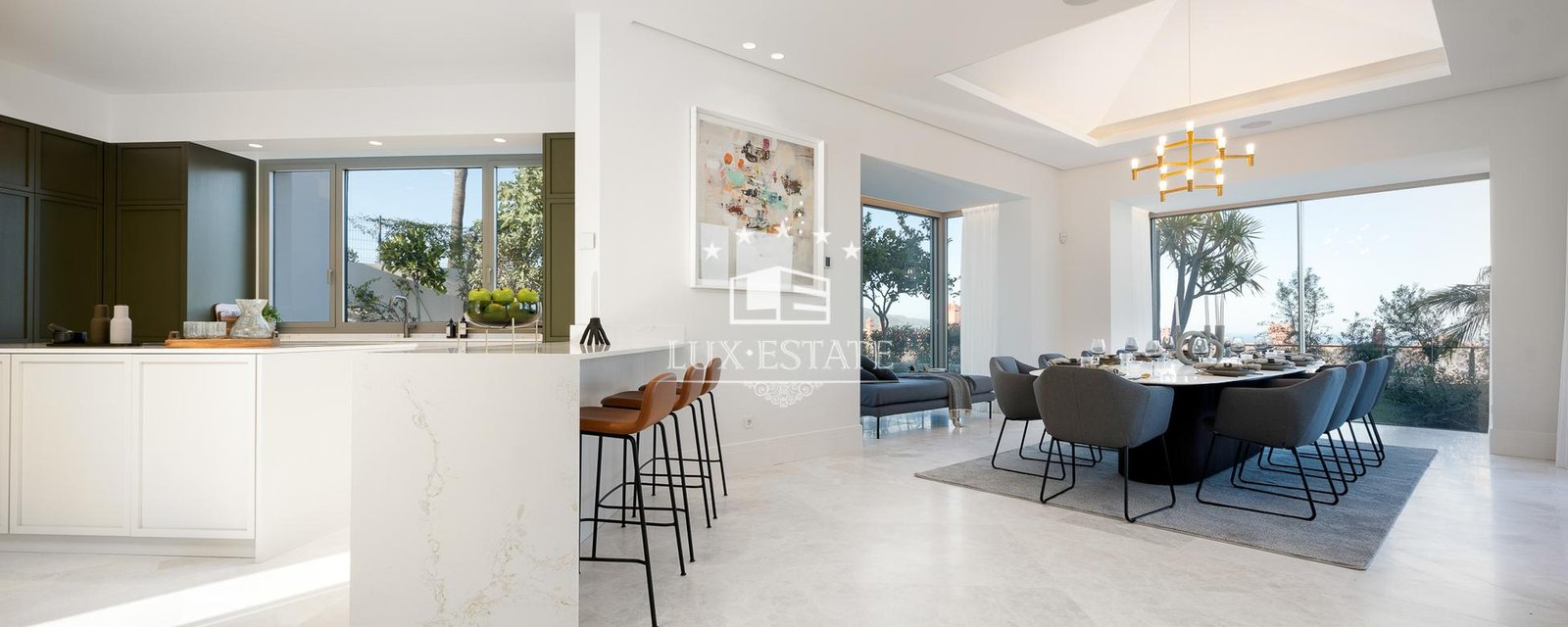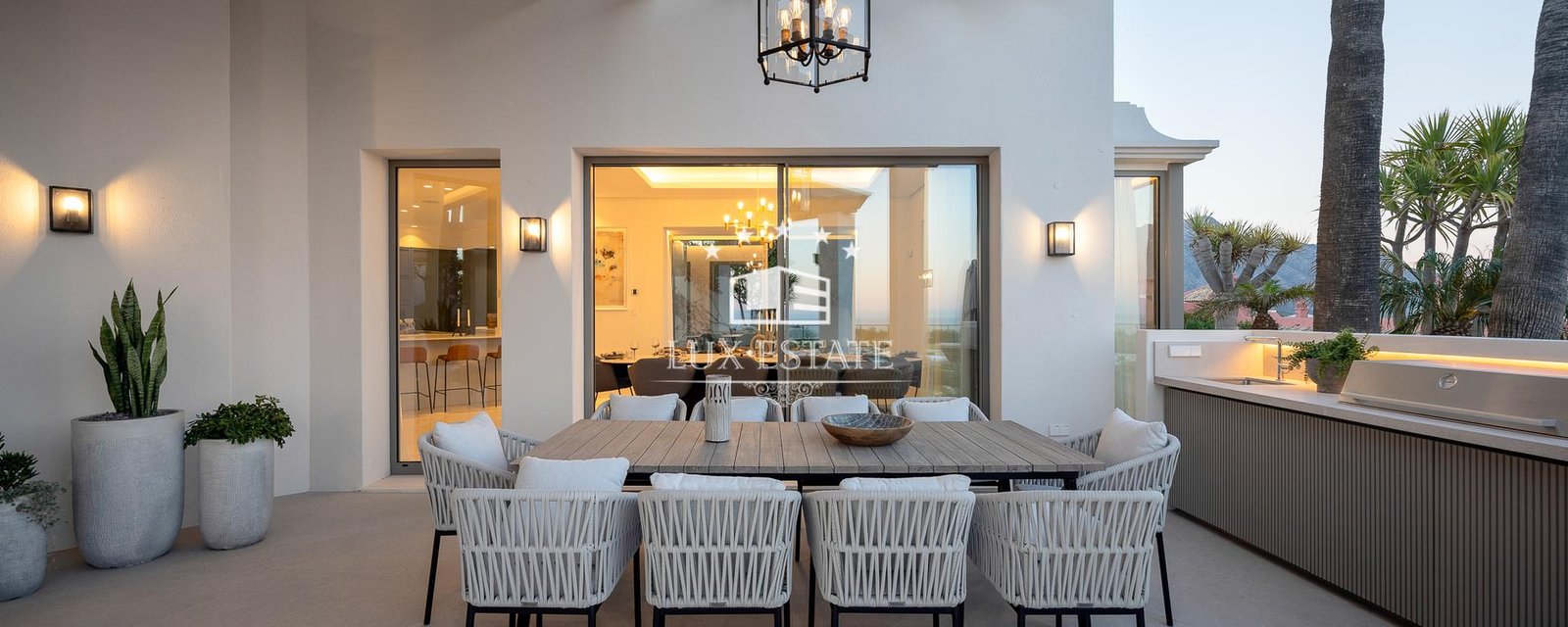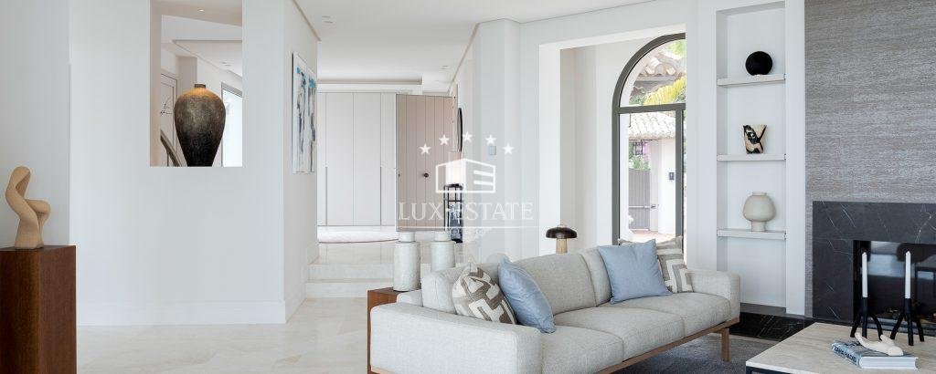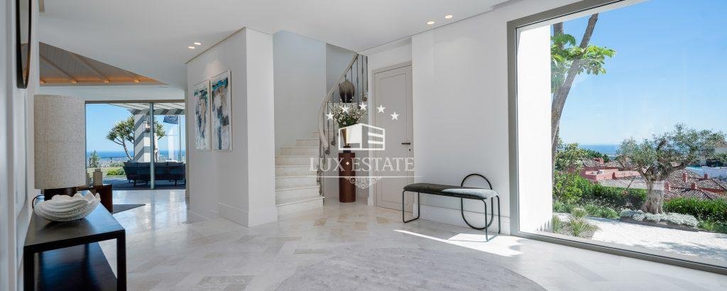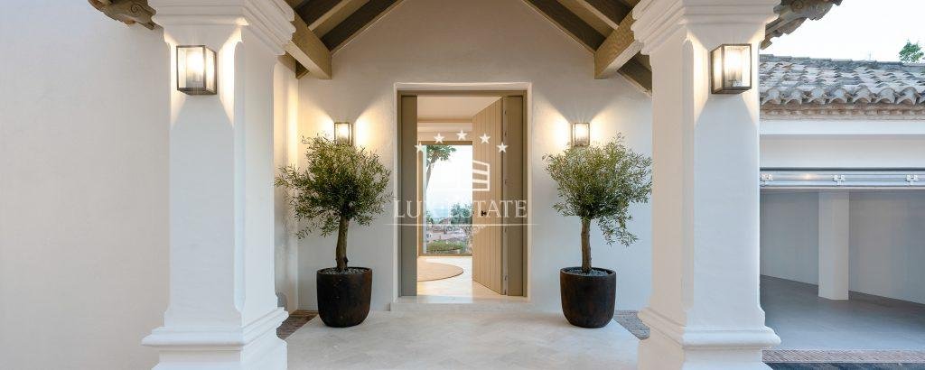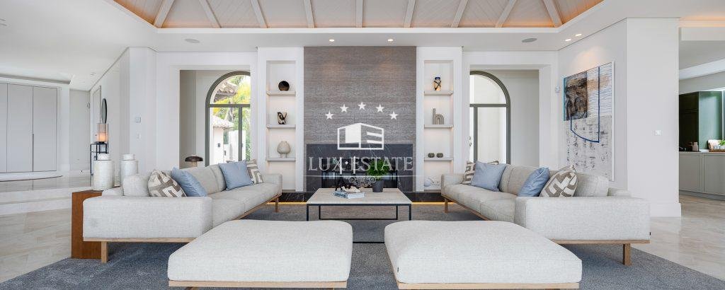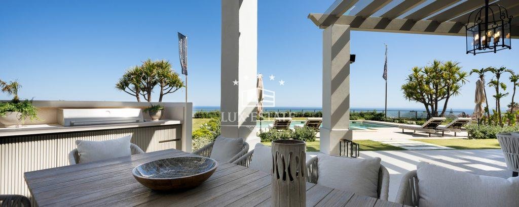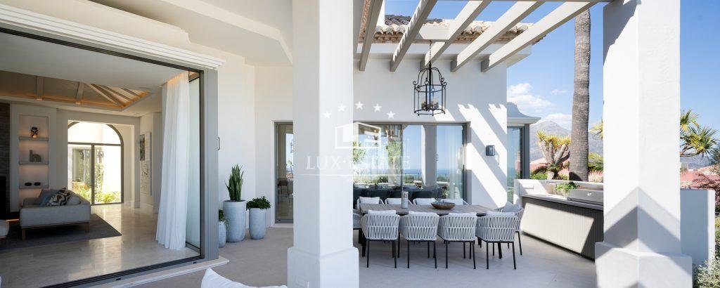 This stunning villa is located on the highest point of Monte Halcones, La Quinta and stands out for it’s one-of-a-kind views. The view As you approach the private driveway, you are welcomed by an impressive Andalusian patio. The property has a bright entry hall with premium marble that leads you to a spacious living room. This space is followed by an open-plan Danespan kitchen and stunning dining area, perfect for entertaining. This level also includes a