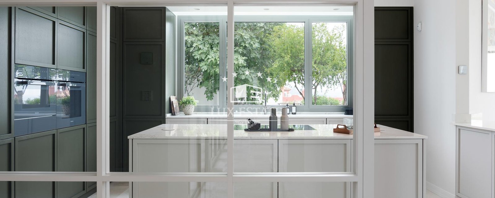 guest toilet, separate TV room, 2 en-suite bedrooms and a laundry room. The elegant spiral stairs take you to the top floor. The first space you encounter is an elevated office that looks out on to the coast and the Mediterranean Sea. The master bedroom will blow your mind once you look out. The bedrooms elevated position offers you not only an unbeatable view but also extreme privacy. The en-suite bathroom includes a big bath tub and a unique hammam style