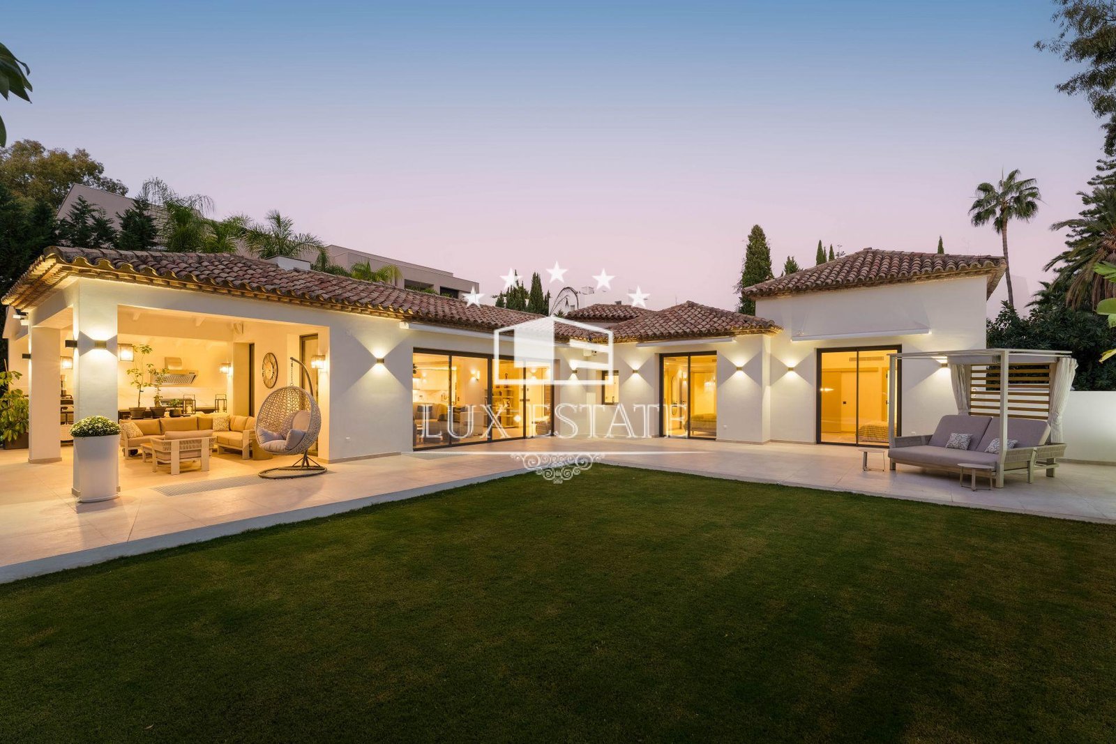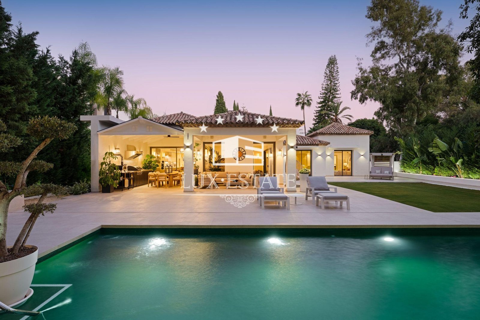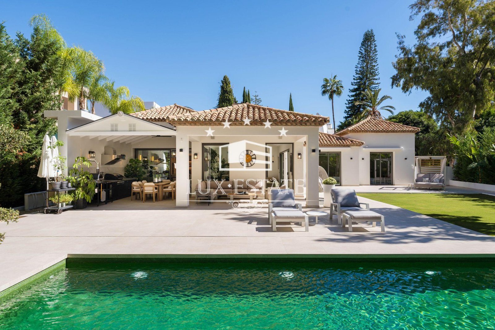 The outdoor areas are crafted for year-round Mediterranean living.