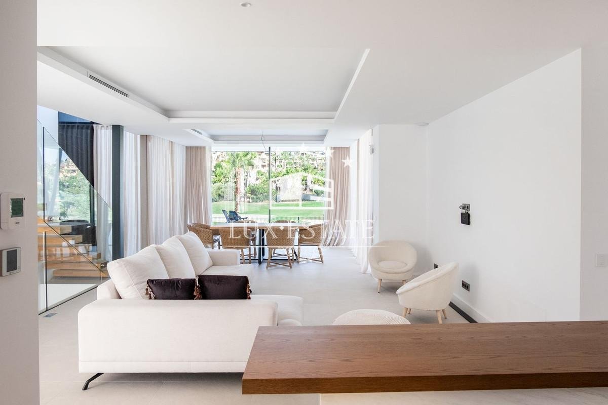 Conveniently located in a well known area of El Campanario, this secure community of 7 brand new key ready villas is close to all amenities, shops, schools and is set on first line golf just a 5 min drive away to the beach. All the high end furniture as well as technical appliances are included in the price. This villa has great renting potential and could be considered as a profitable investment. Level -1 has a plenty of natural light and could be modified into 2 bedrooms or gym, spa, game room, etc. with patio access.