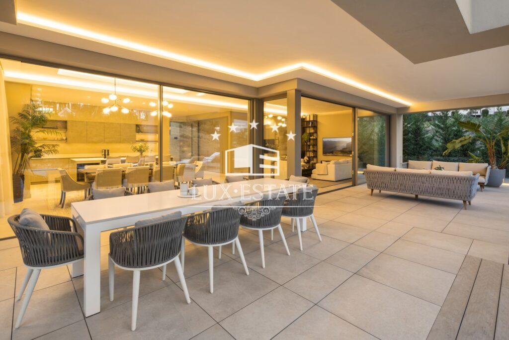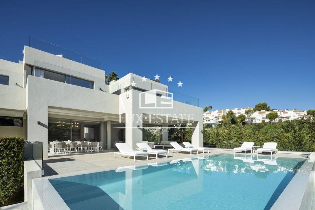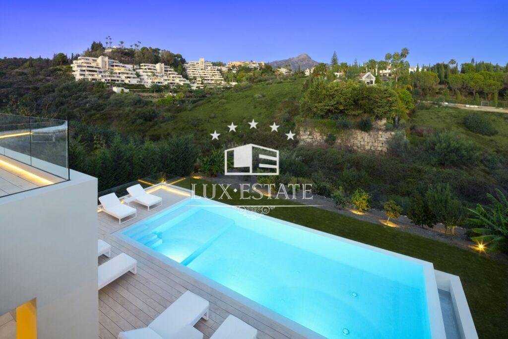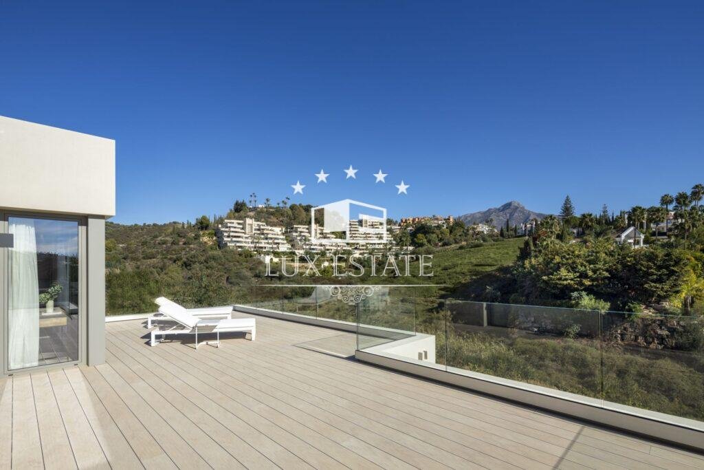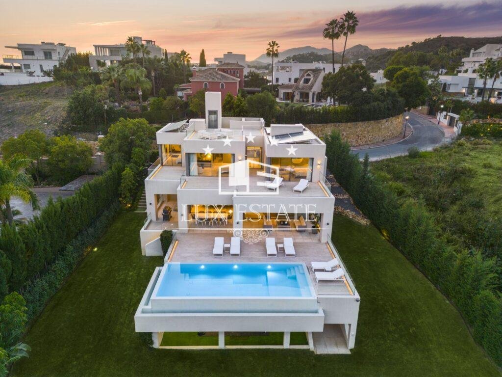 Introducing Villa Miranda, a masterpiece of modern architecture perfectly positioned in the sought-after Nueva Andalucia enclave. This exceptional residence boasts an eastern orientation, bathing the interiors in sunlight throughout the morning and day, while offering stunning vistas of the surrounding landscape and the majestic La Concha mountain.