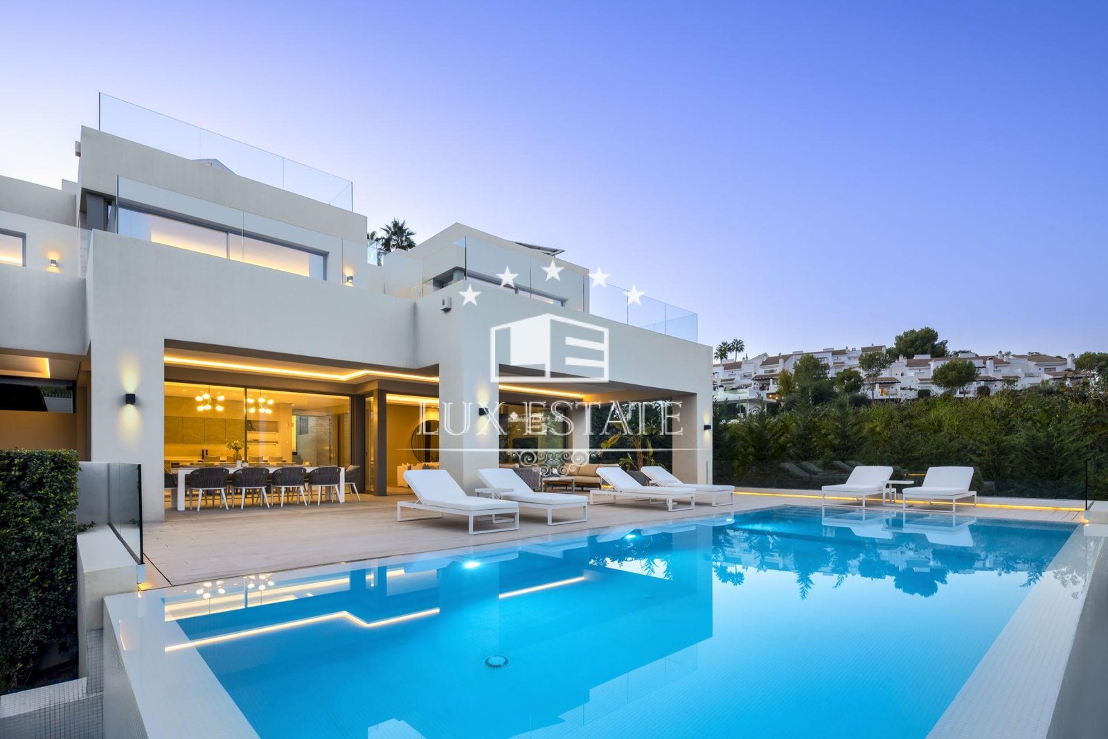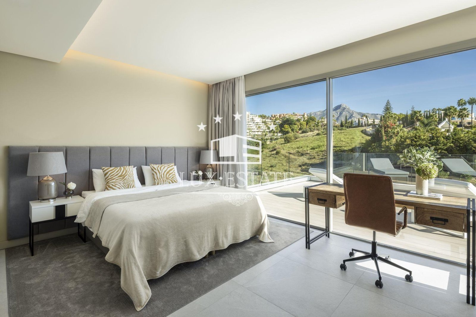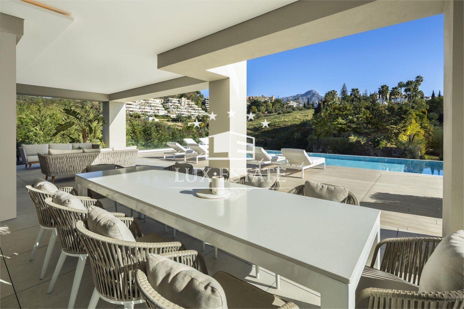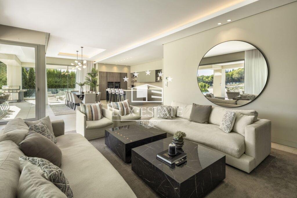 Introducing Villa Miranda, a masterpiece of modern architecture perfectly positioned in the sought-after Nueva Andalucia enclave. This exceptional residence boasts an eastern orientation, bathing the interiors in sunlight throughout the morning and day, while offering stunning vistas of the surrounding landscape and the majestic La Concha mountain.