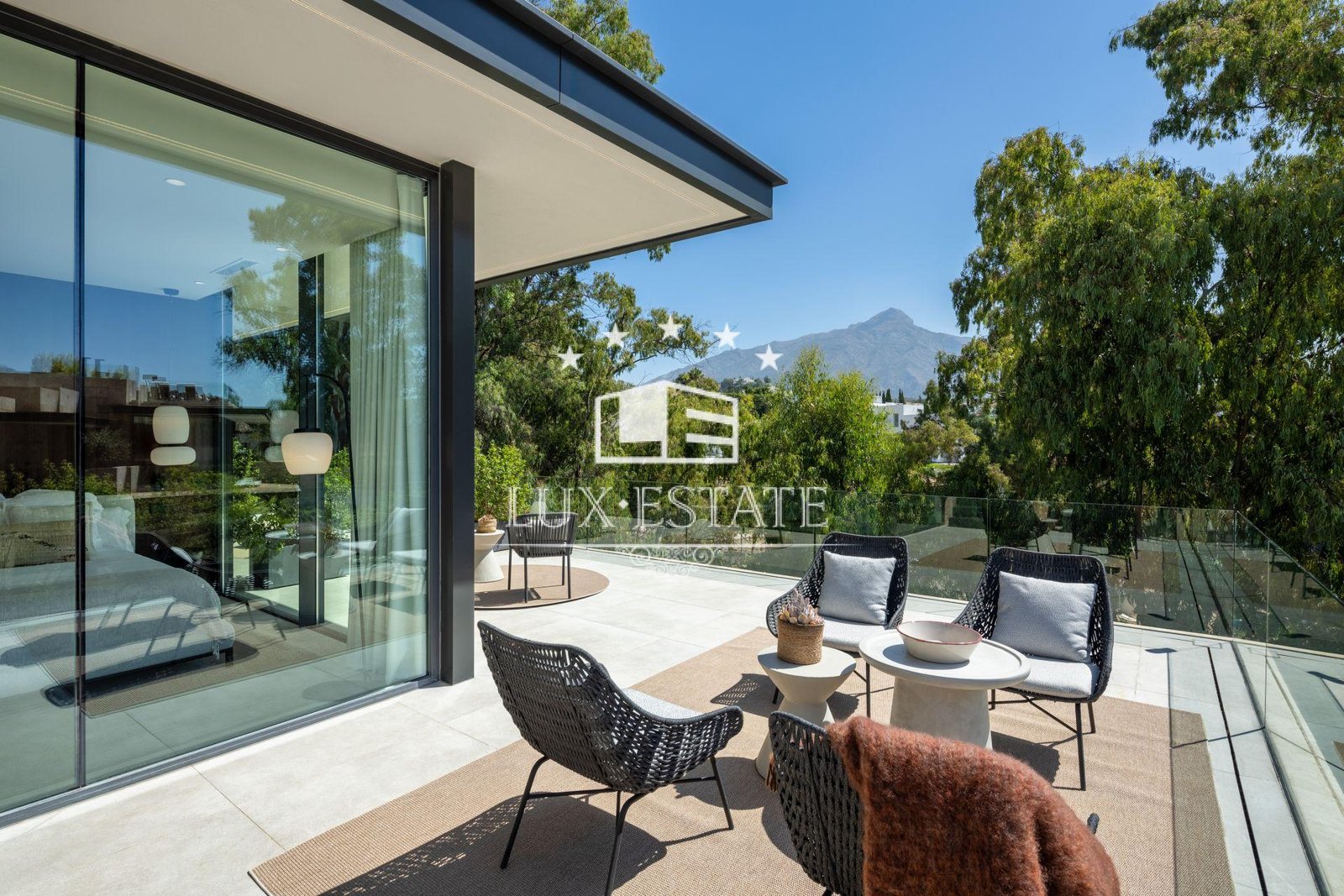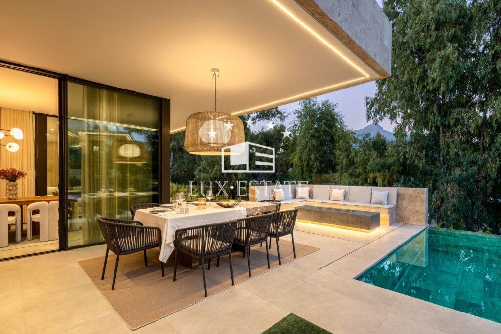 Villa Selene represents the perfect fusion of contemporary architecture, sustainable living, and timeless elegance in La Cerquilla, one of the most exclusive and coveted areas of Nueva Andalucía. Fully furnished and surrounded by the natural serenity of the Golf Valley, this villa has been crafted with organic materials and a design philosophy that blends harmoniously with its lush surroundings—offering unparalleled comfort, style, and environmental efficiency.