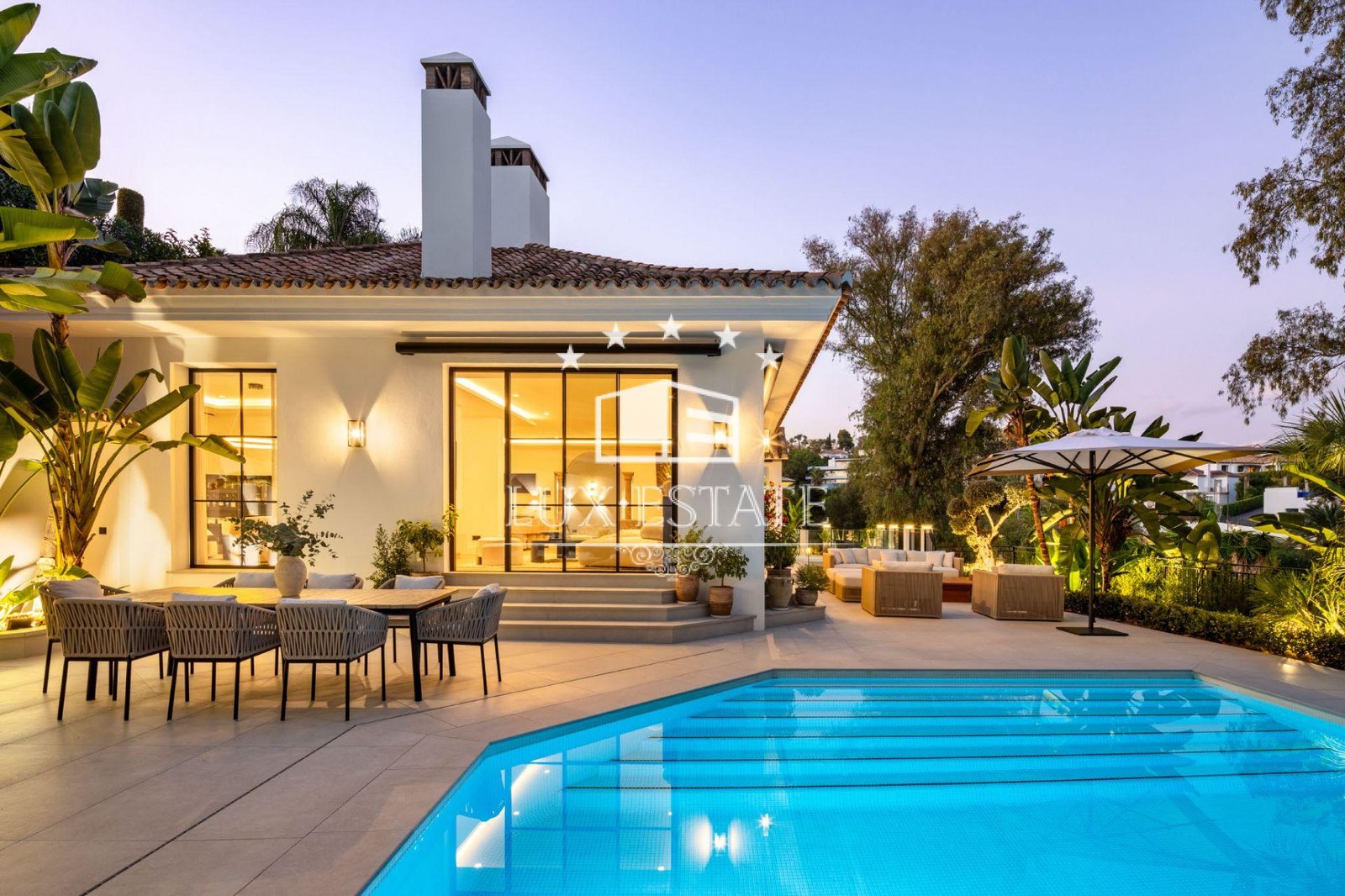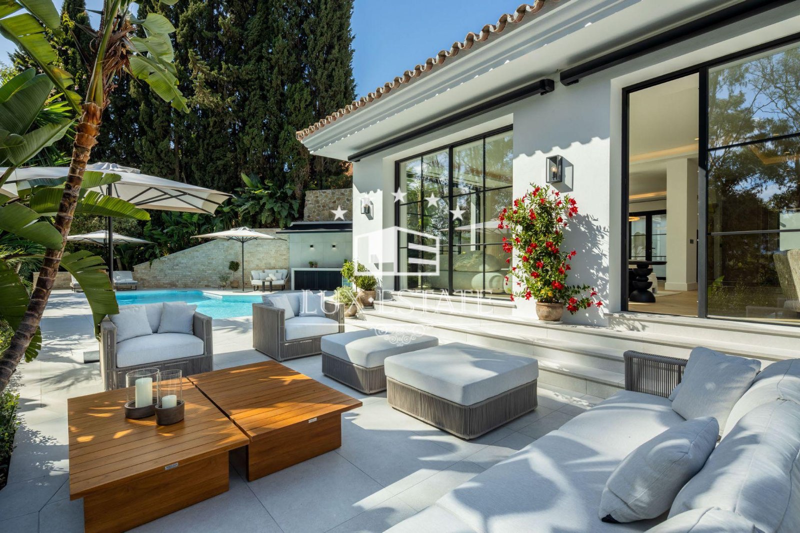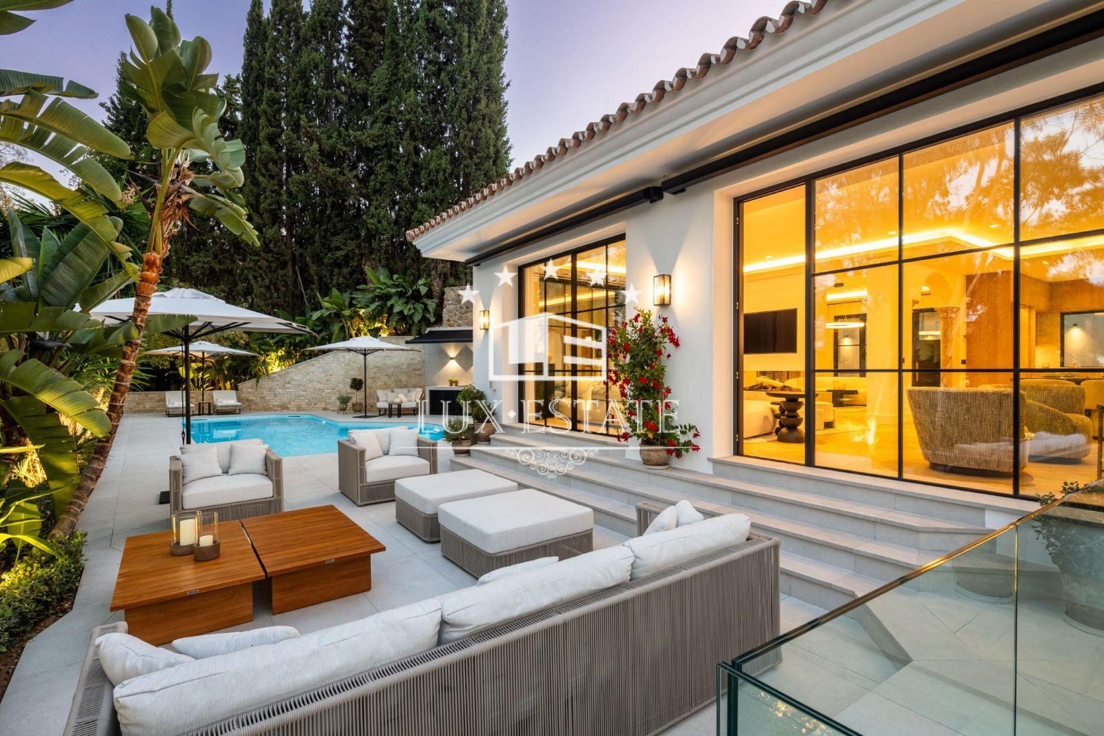 Fully furnished both inside and out, Villa Skyfall comes complete with Eichholtz interiors, G&G Italia outdoor furniture, a Samsung QLED entertainment system, and an Ambifuego 360º fireplace. Every detail has been curated to deliver effortless comfort and sophisticated living.