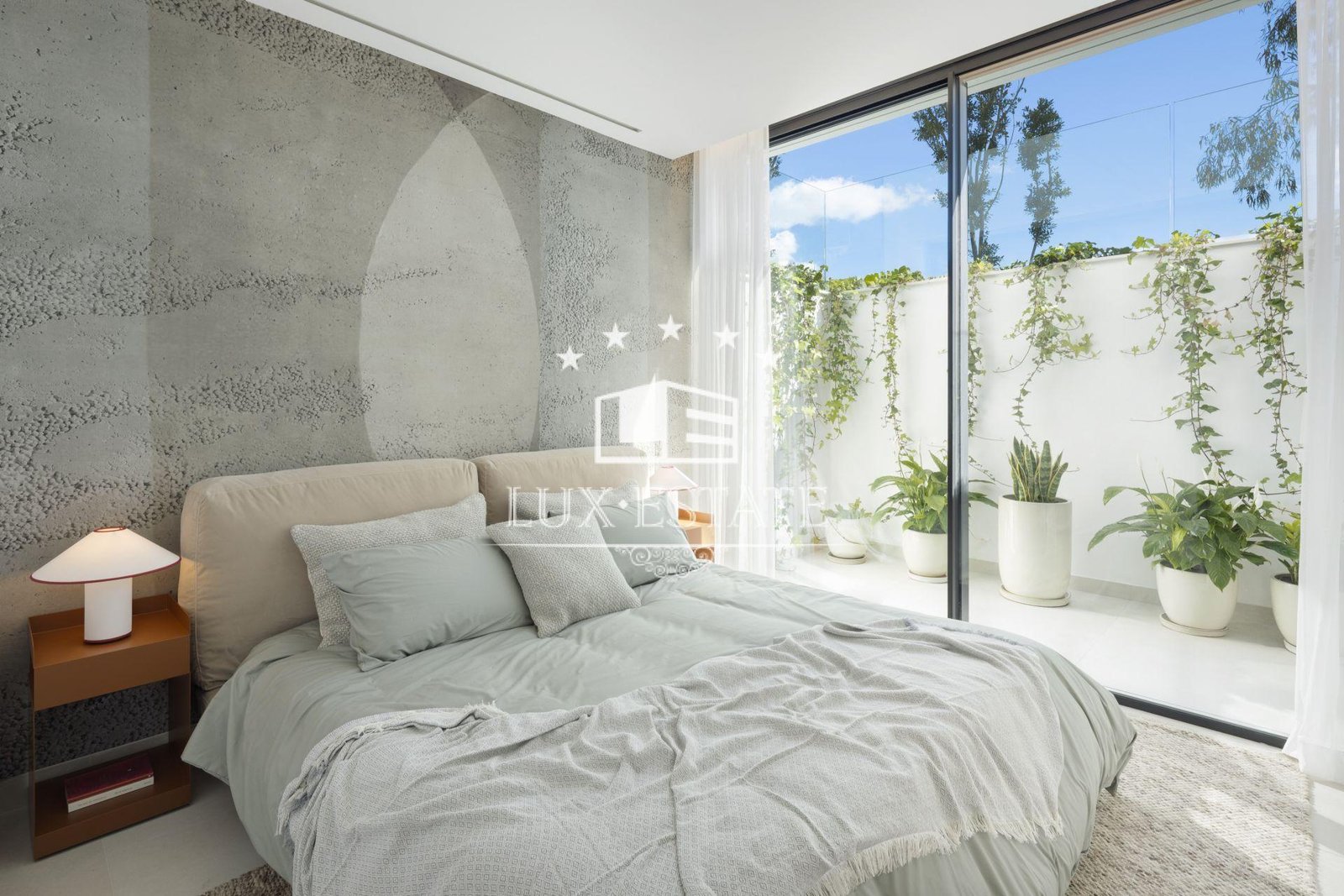 With a total built area of 913 sqm, including 307 sqm of expansive terraces, Villa Tiza has been created for effortless indoor-outdoor flow and stylish living. The spacious master suite is a true retreat, complete with a walk-in dressing room and a spa-style bathroom. Four additional guest bedrooms, three sleek bathrooms, and a guest WC ensure ample space for family and visitors alikeSophistication in Every Corner