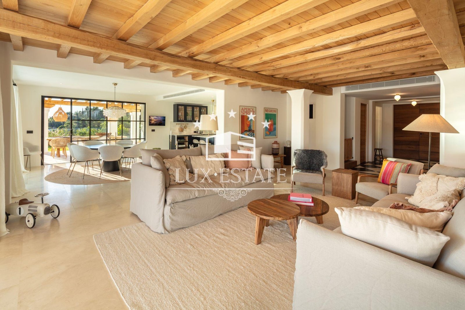 This designer masterpiece was created by a renowned Ibiza architect and offers extra large bedrooms, a home office, and a luxurious Nordic interior design.