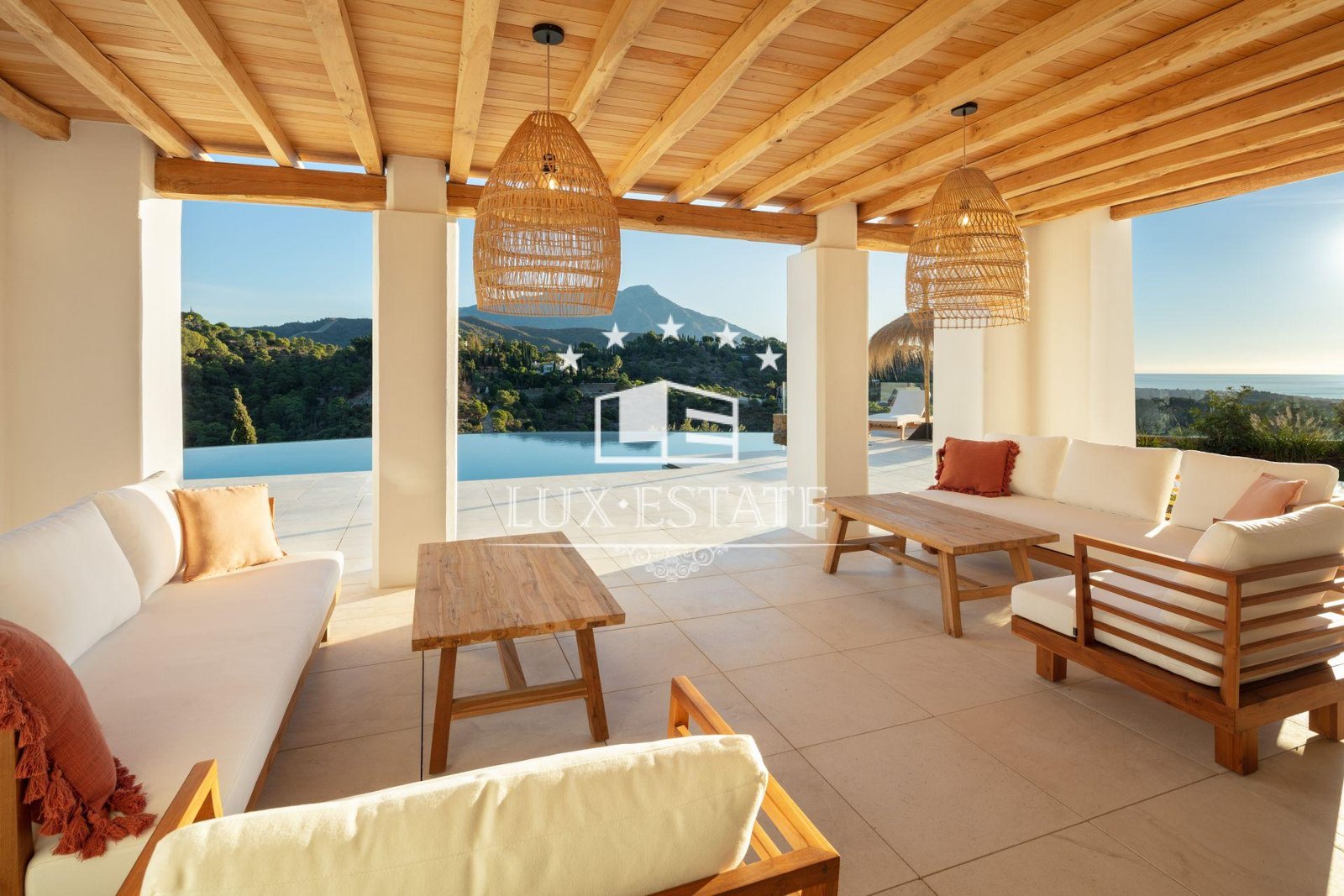 Enjoy expansive terraces, manicured gardens, an impressive driveway, and magnificent sunrise views from the outdoor chill out areas.